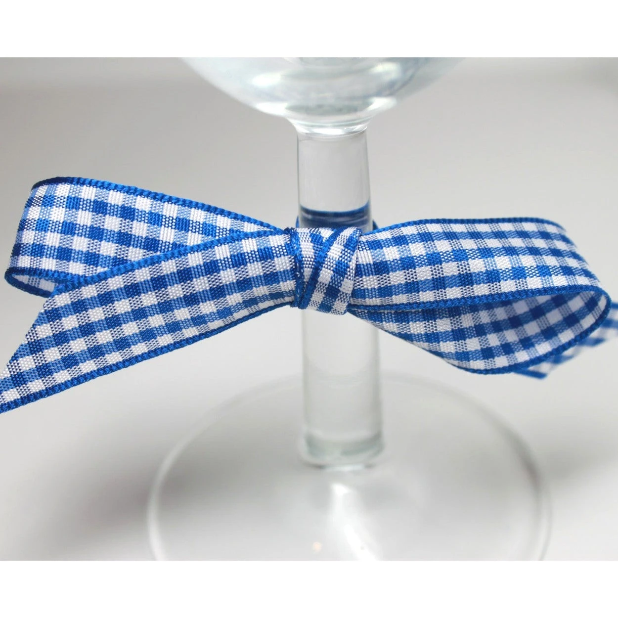 Gingham ribbon in royal blue, supplied on 20m rolls.