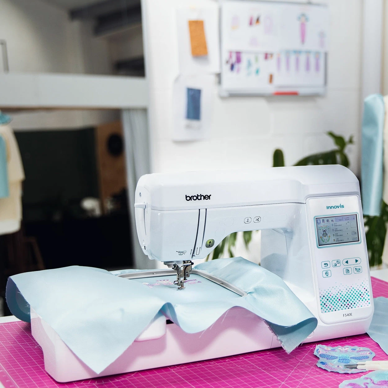 the Innov-is F540E embroidery machine is ideal for those who want a compact, yet powerful embroidery partner. See your style come alive on the colour LCD touchscreen and make your unique mark with 193 built-in embroidery patterns, and import your own via the machine’s wireless connectivity, and save time with the programmable jump stitch trimmer.
