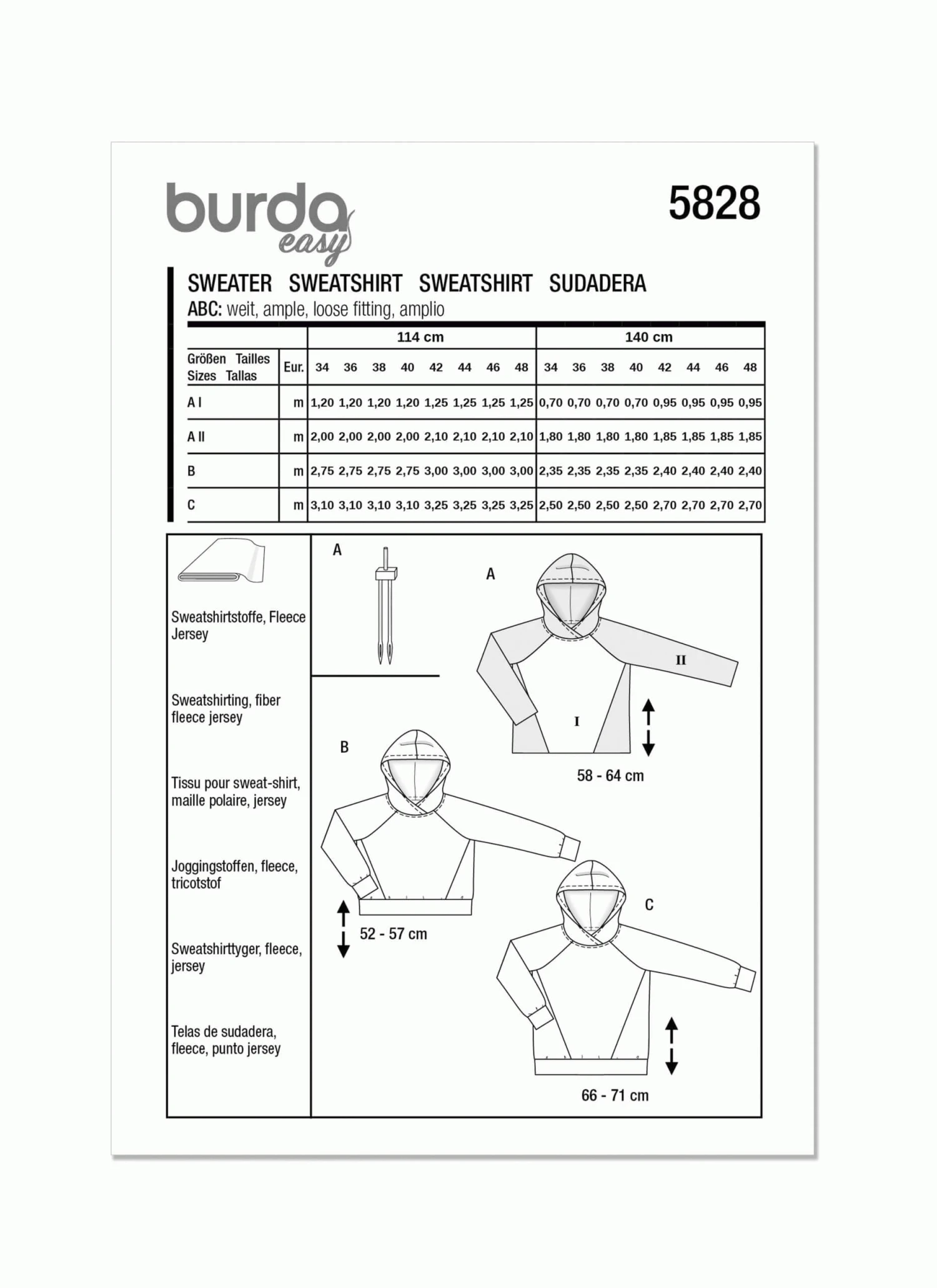 Pull-on, loose fit hoodies in two lengths with asymmetric seam details. Designed for stretch knit fabrics. Sew Rating: Very Easy
