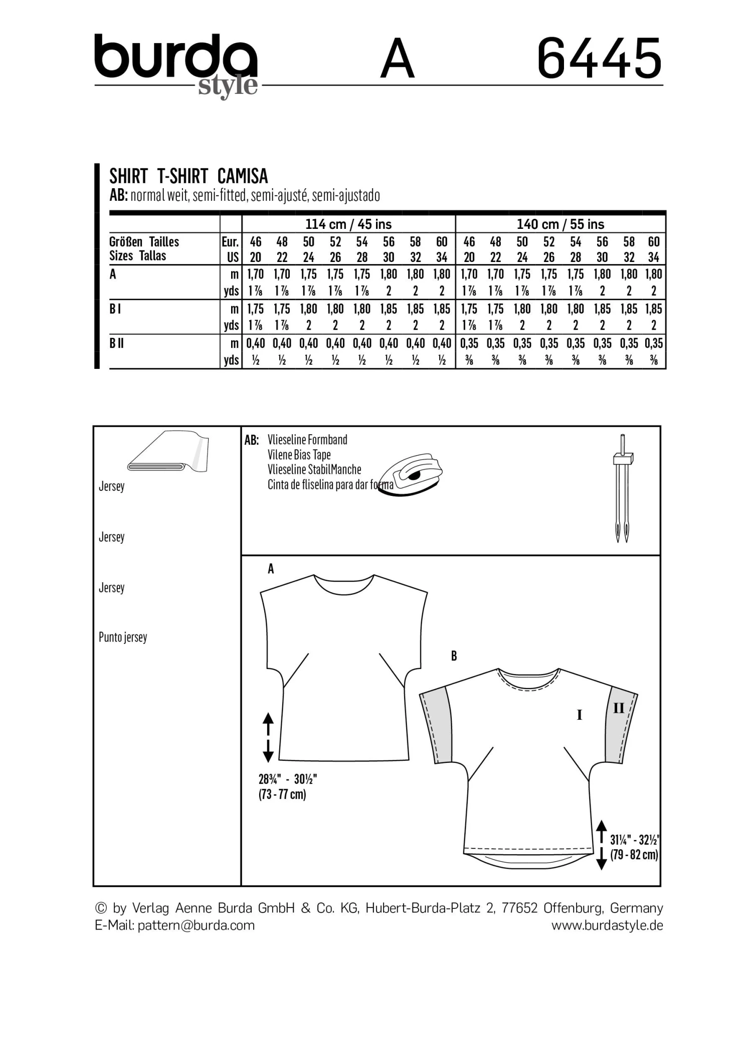 Be the first to review “Burda 6445 Women’s Simple Tops Sewing Pattern” Cancel reply