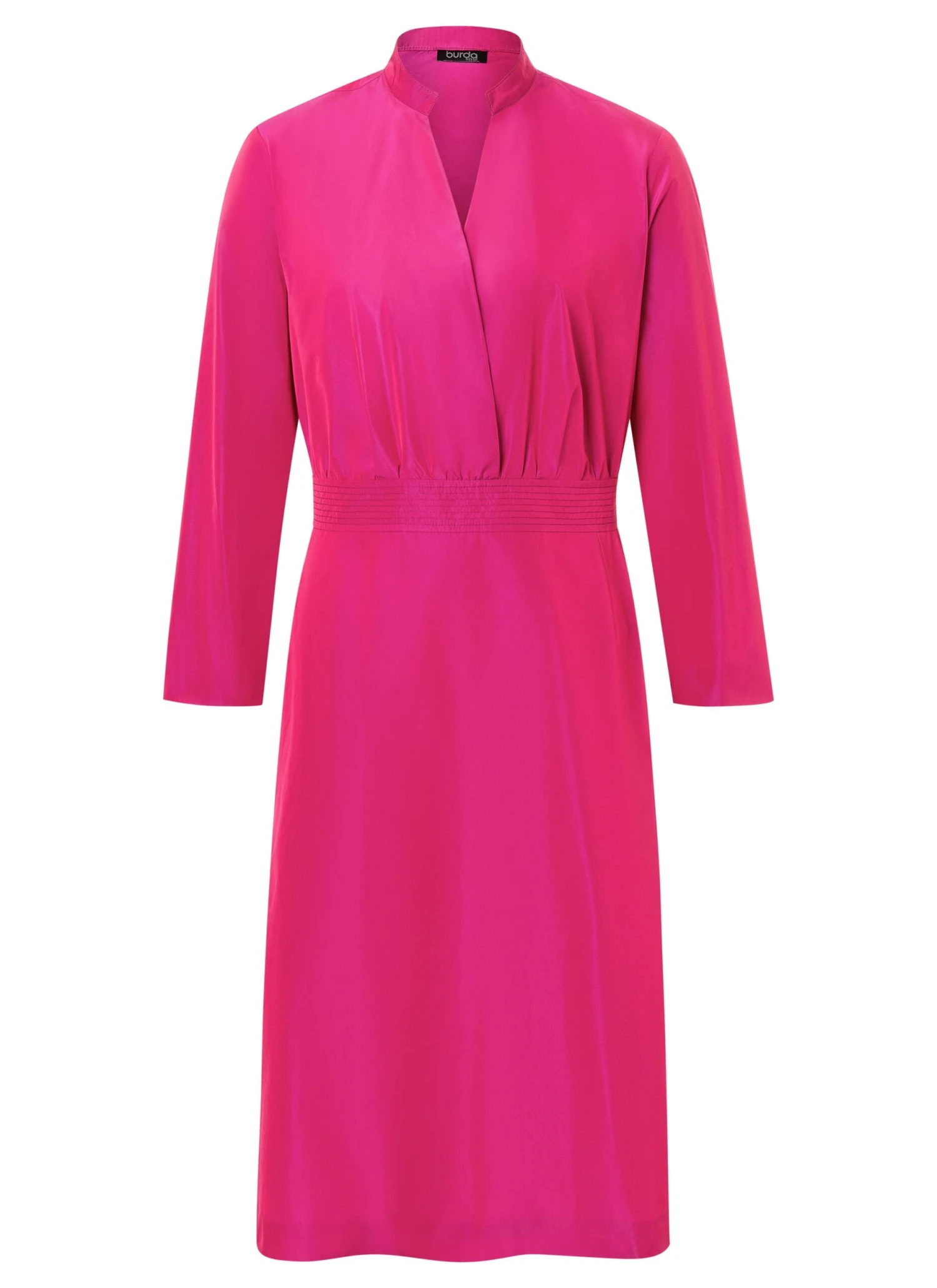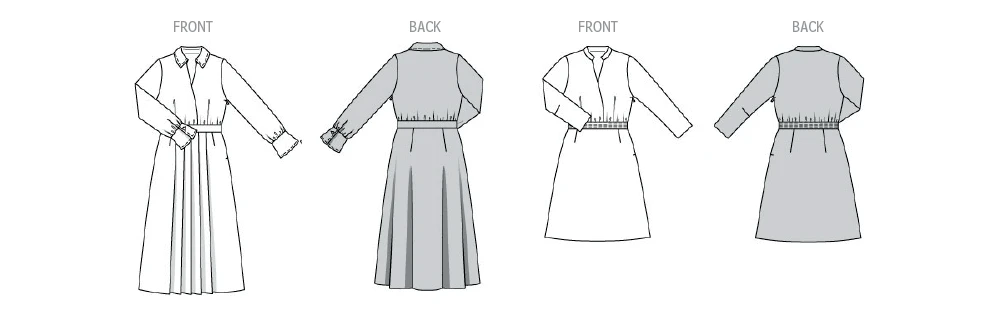 Discover our versatile dress pattern: sew a timeless dress with a flattering wrap effect and iridescent taffeta. Or create a spring-like dress with a bright batik print and couture drape effect, perfect for sunny days and even wearable on cooler days with a slim turtleneck. Recommended fabrics: cotton fabrics, blended fabrics, poplin and taffeta.