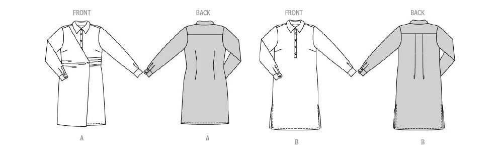 Burda sewing pattern for shirt blouse dress with wrap effect. The wrap detail of the cut emphasizes the figure. If you prefer a classic look, go for the straight cut shirt blouse dress pattern. The classic silhouette is easy to style for business meetings or an evening out!