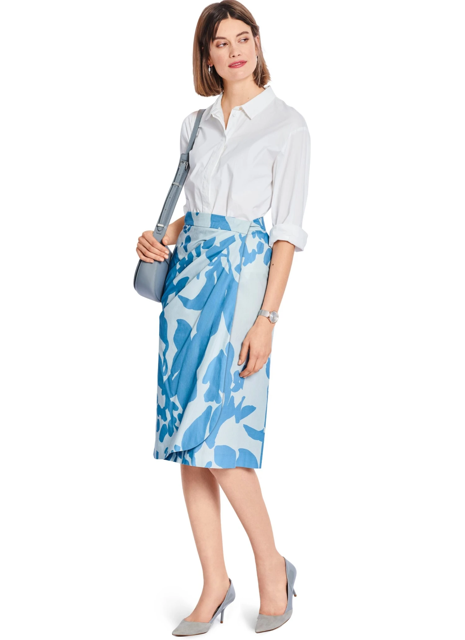 Complete your summer look with this Burda style skirt pattern! The two variations offer a versatile wrap skirt: the first one in sari style features extra-wide ties and an inner button, while the second delights with a modern floral print, asymmetrical pleats, and a wide waistband without bulky ties. Perfect for pairing with a swimsuit or styled elegantly with a silk top and high heels!