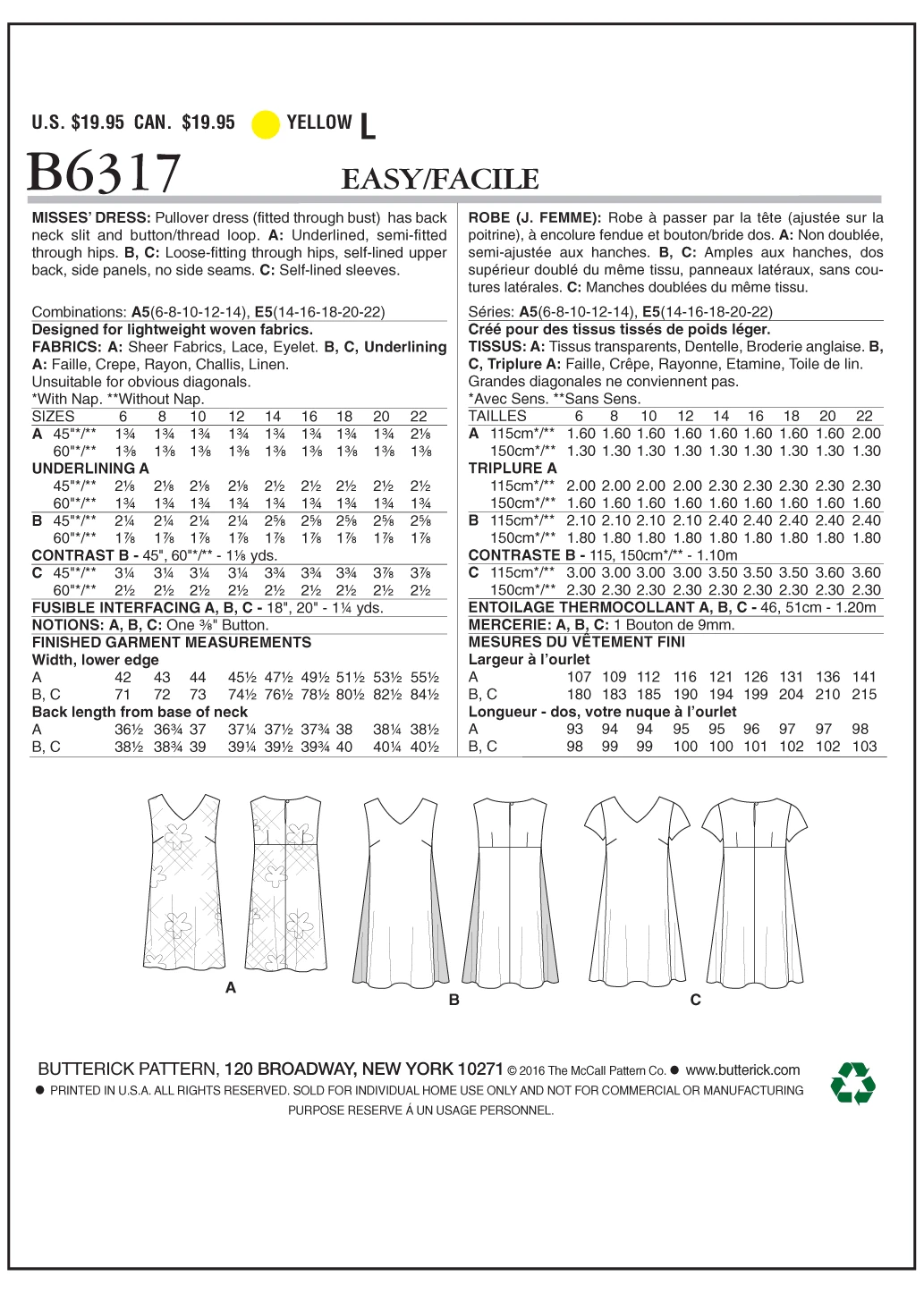 Be the first to review “Butterick 6317 Misses’ Pullover V-Neck Dresses Pattern” Cancel reply