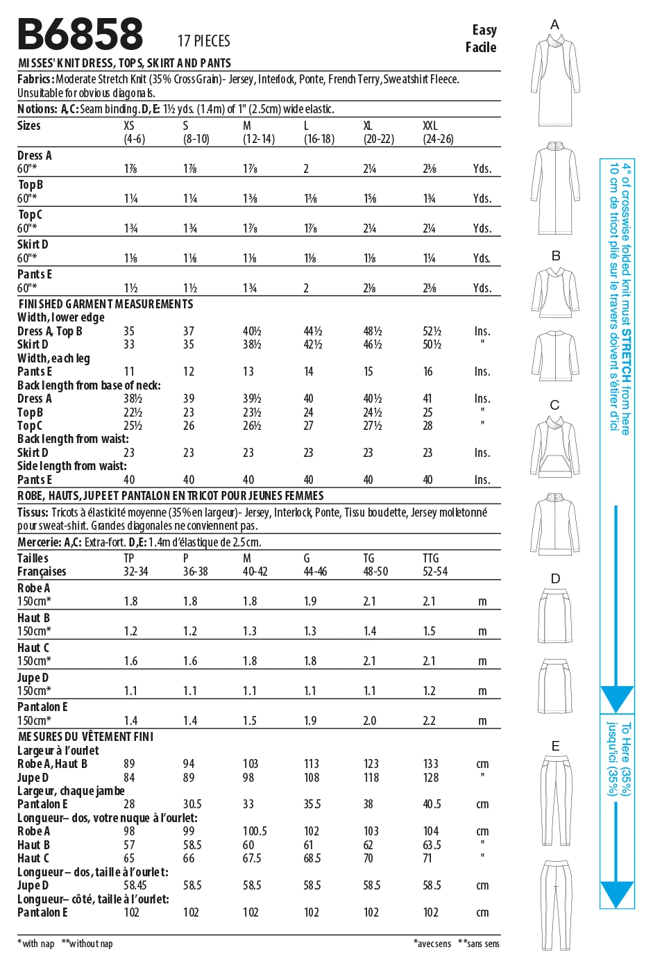 Be the first to review “Butterick 6858 Misses’ Knit Dress, Tops, Skirt And Pants Pattern” Cancel reply