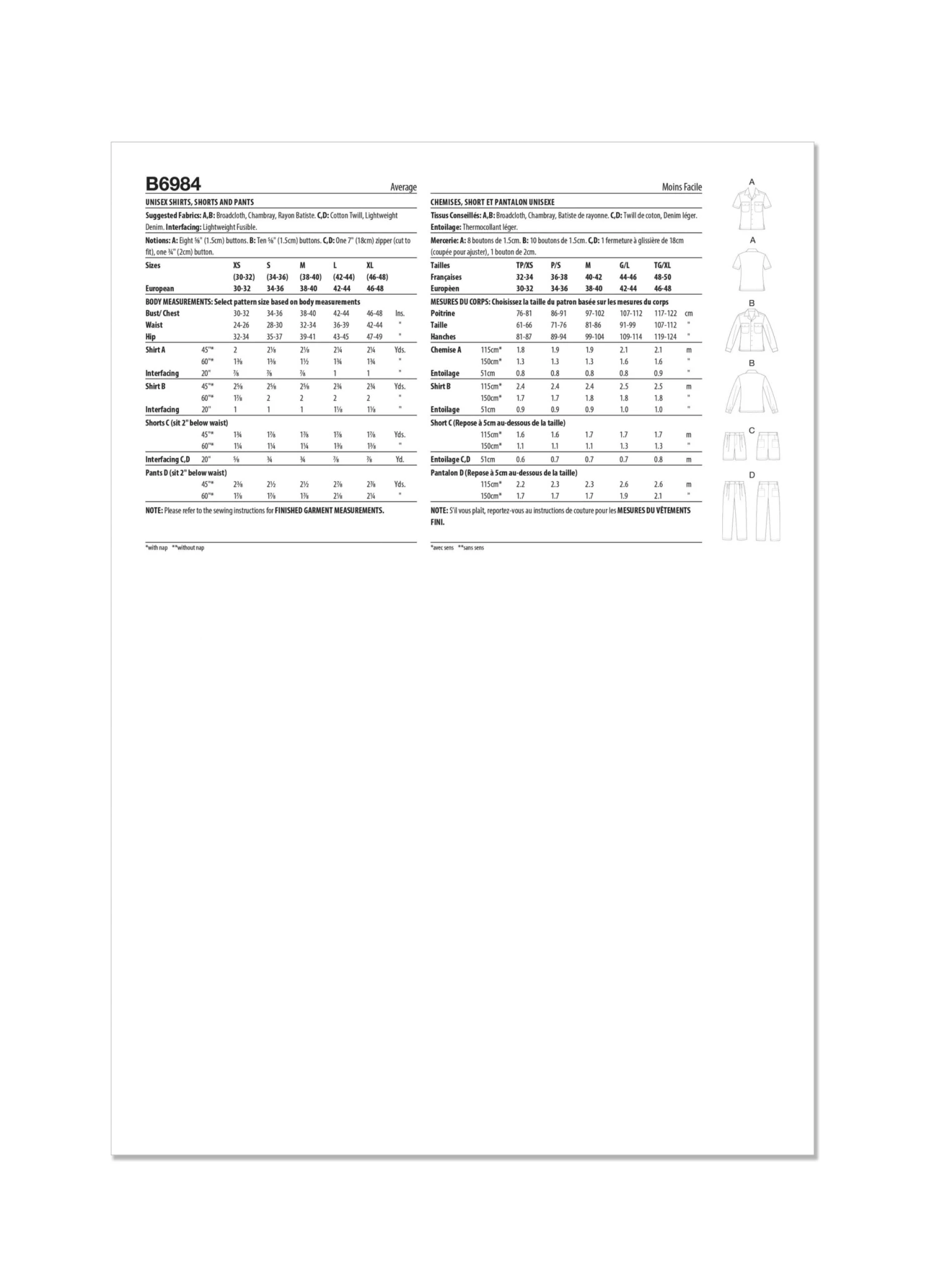 Be the first to review “Butterick Sewing Pattern B6984 Unisex Shirts, Shorts And Pants” Cancel reply
