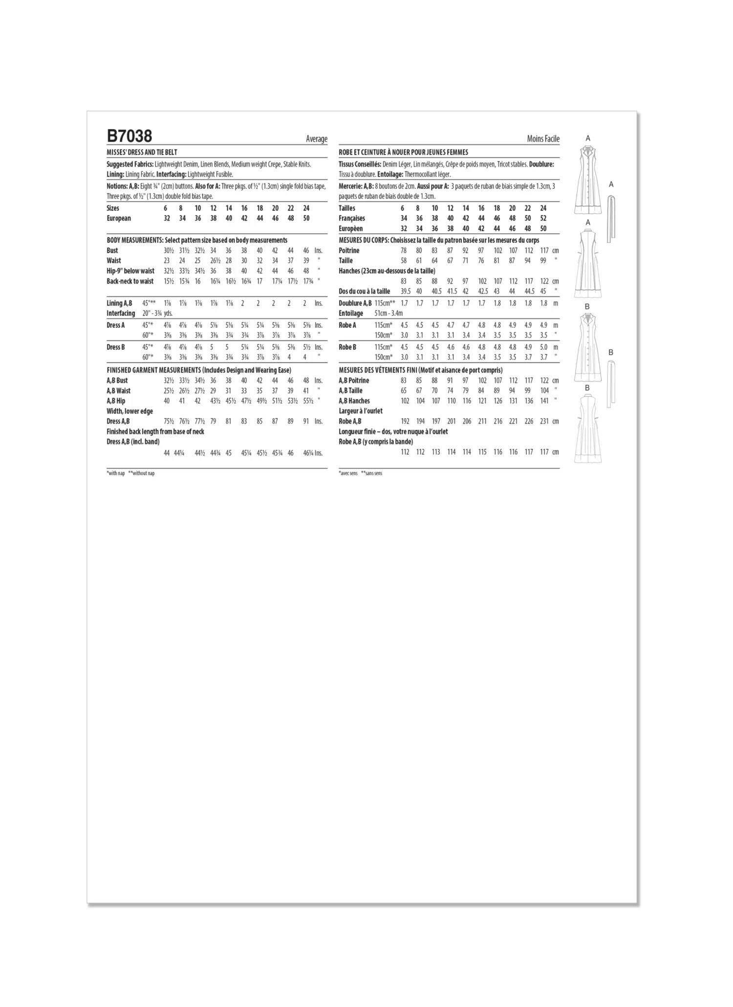 Fabric Suggestion : Lightweight Denim, Linen Blends, Medium weight Crepe, Stable Knits. Lining: Lining Fabric. Interfacing: Lightweight Fusible.