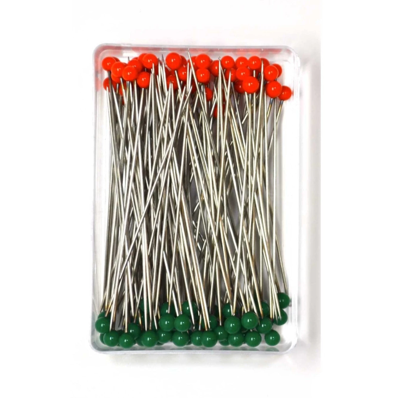 Glass head pins perfectly suited for quilting, as the pins feature a sharp tip and strong shaft.