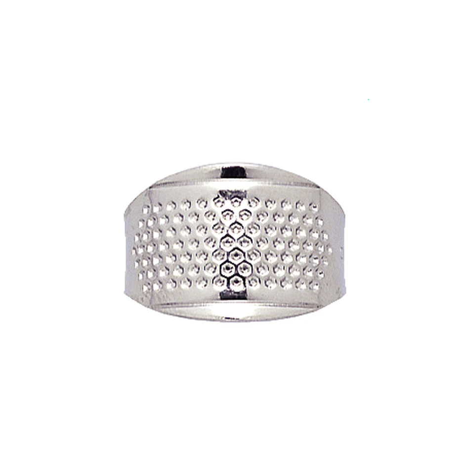 This metal thimble can be used for thick materials and can be adjusted for most finger size.