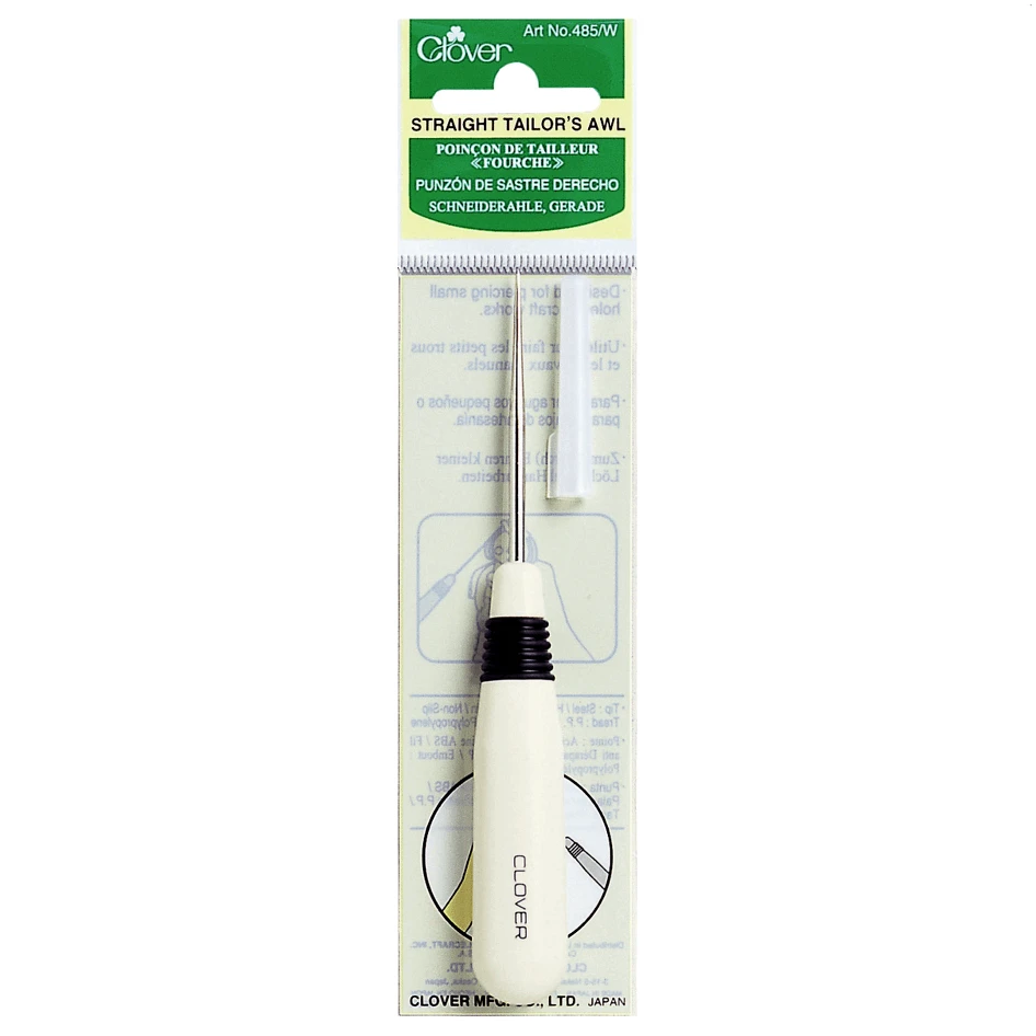 Designed for piercing small holes or craft works. Clover Straight tailors awl has a comfortable handle with non slip rubber grip.