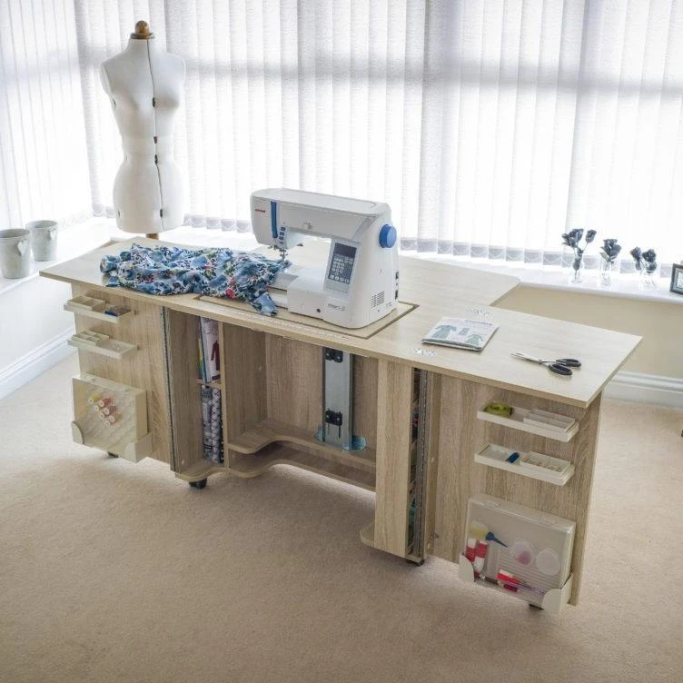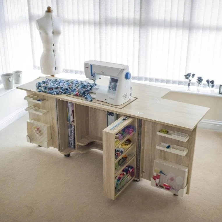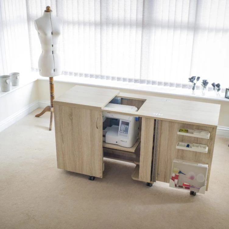 The smallest Horn cabinet to be fitted with the Horn Maxi-lifter opening which is capable of taking virtually all domestic sewing machines on the market old or new!