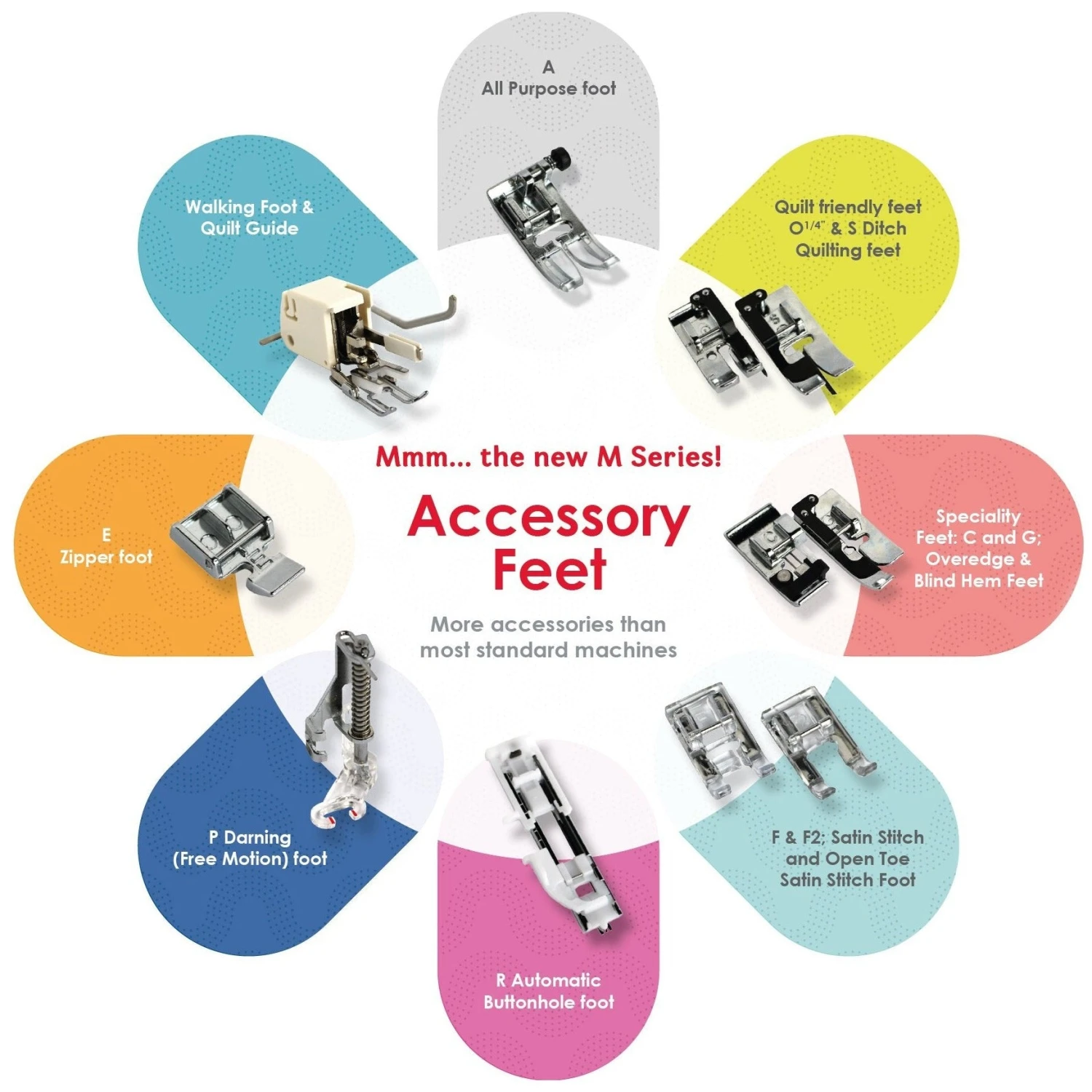 Enhanced Standard features and equipped with more accessories than the average machine – the new Janome M100 QDC sewing machine delivers more!