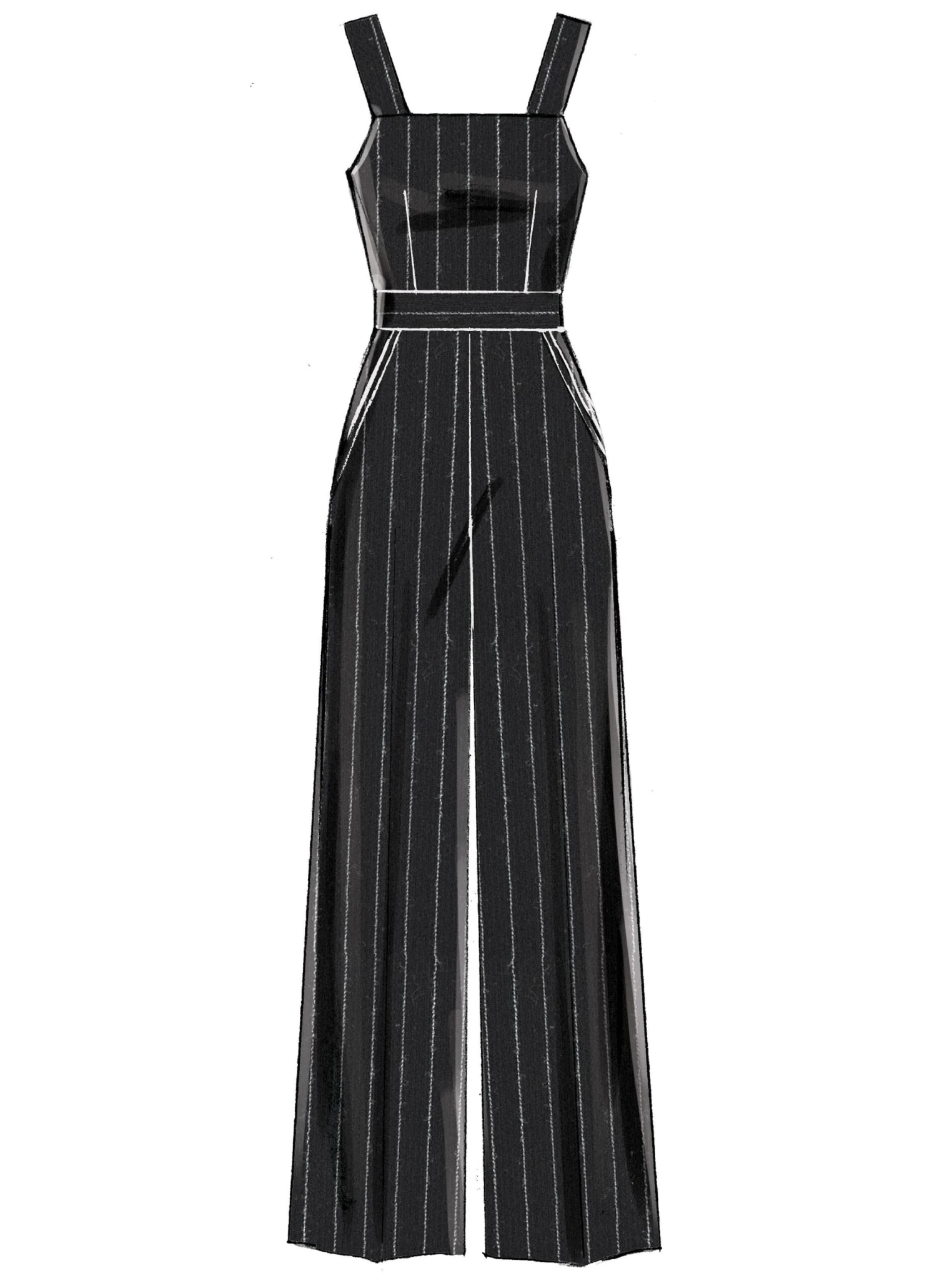 Close-fitting, partially lined dresses have strap, pocket and length variations. A: Self belt. Close fitting, partially lined romper and jumpsuit have strap and length variations. B, C: 2″ slide buckle.