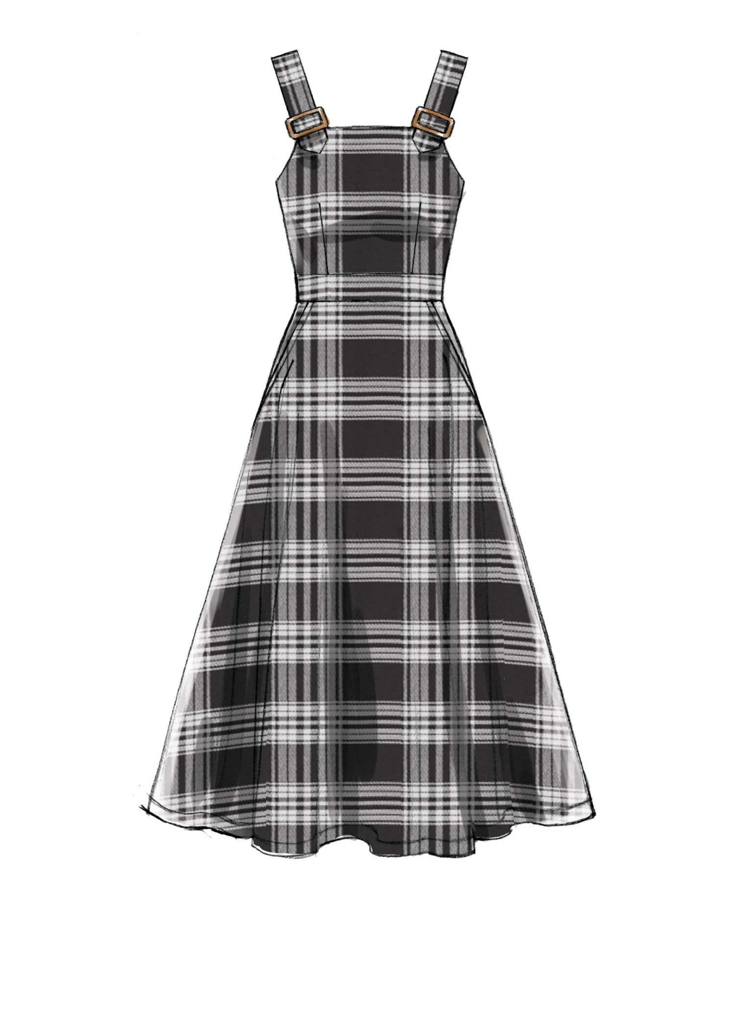 NOTIONS: A: One 2″ (5 cm) Buckle. B, C: Two 2″ (5 cm) Buckles. A, B, C, D: One Hook & Eye, One 16″ (41 cm) Invisible Zipper.