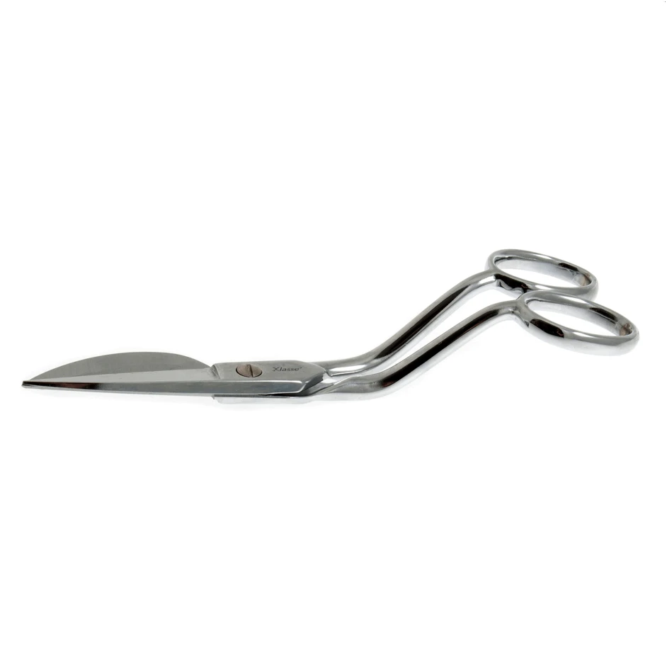 Precision scissors for applique, trimming and quilt work. The double curved handle and shaped ‘bill’ prevents damage to fabric or applique damage allowing a close, controlled cut.