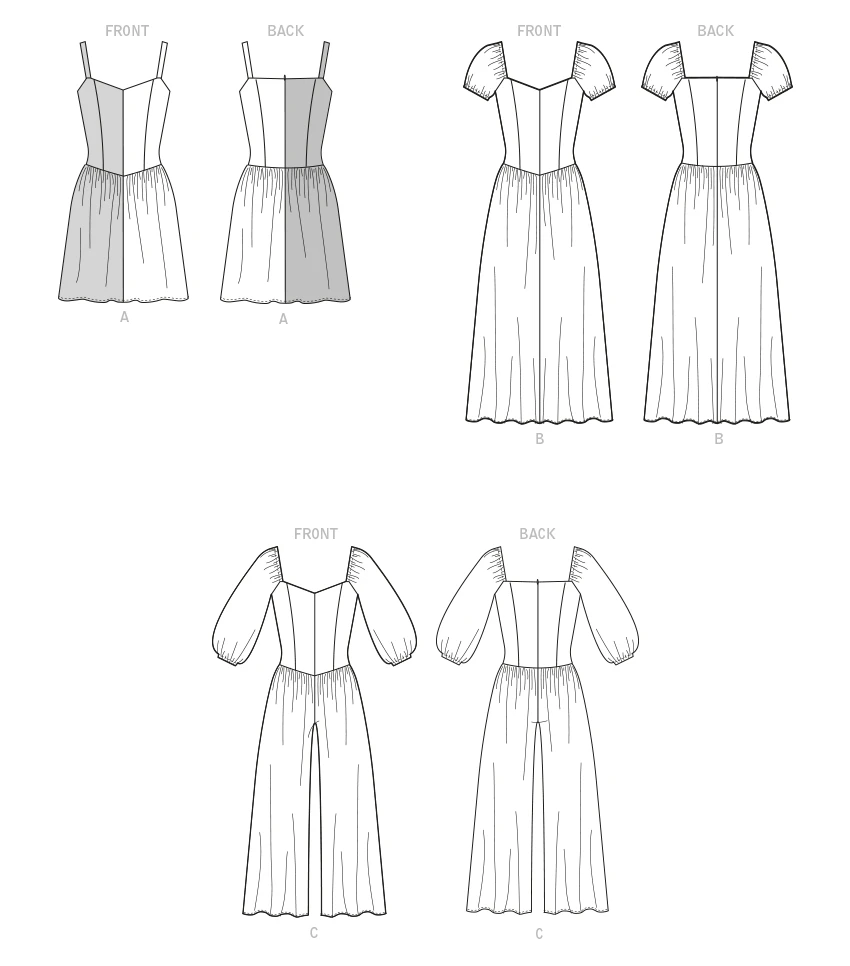 McCall’s sewing pattern for Misses’ and women’s princess seam dresses and jumpsuit.