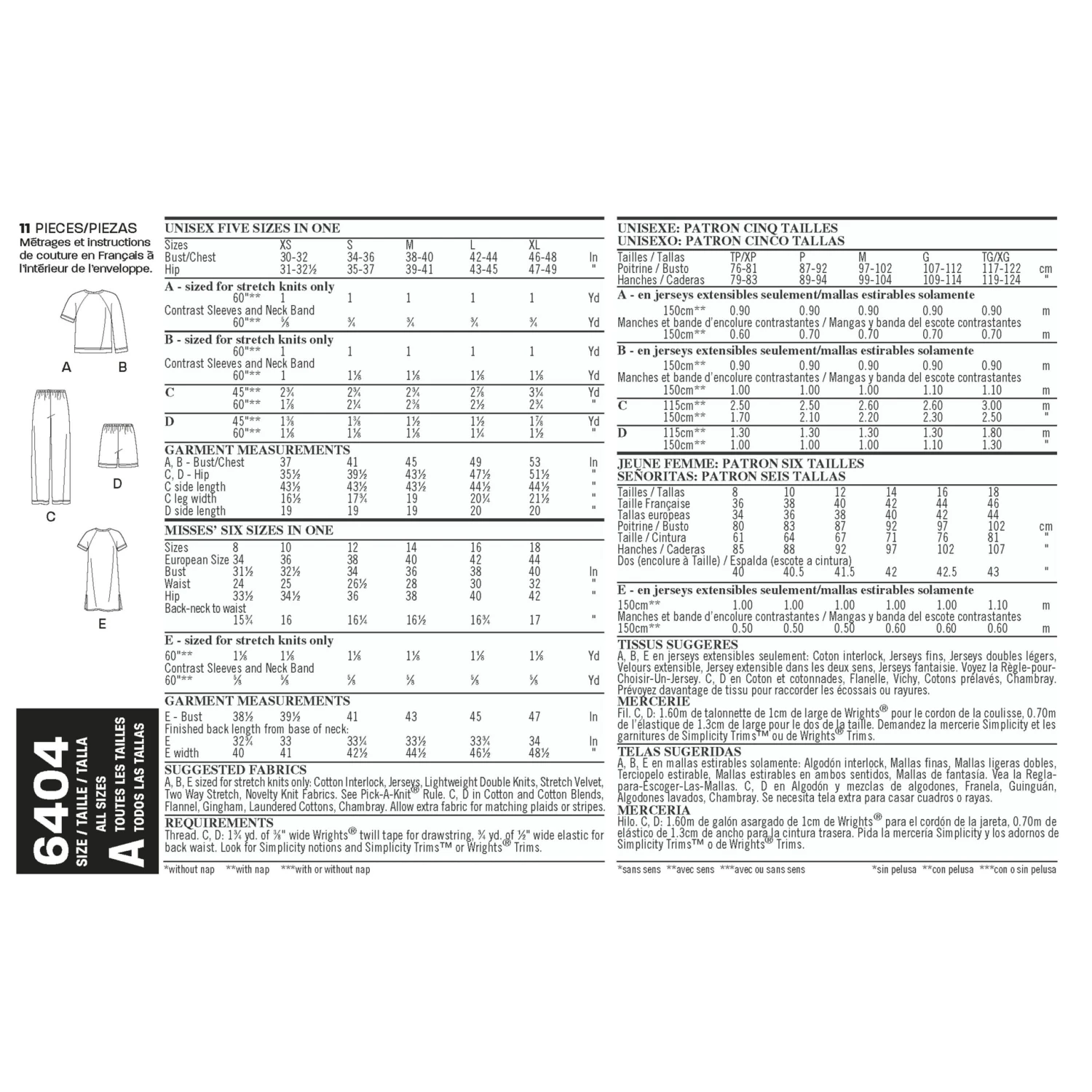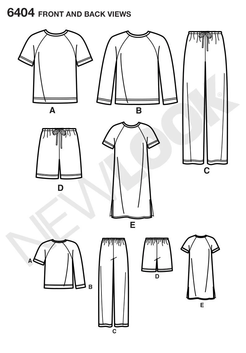 This easy to sew loungewear pattern for misses and men includes knit top in short or long sleeve, plus pull on shorts and pants. Knit nightshirt also included sized for miss only.