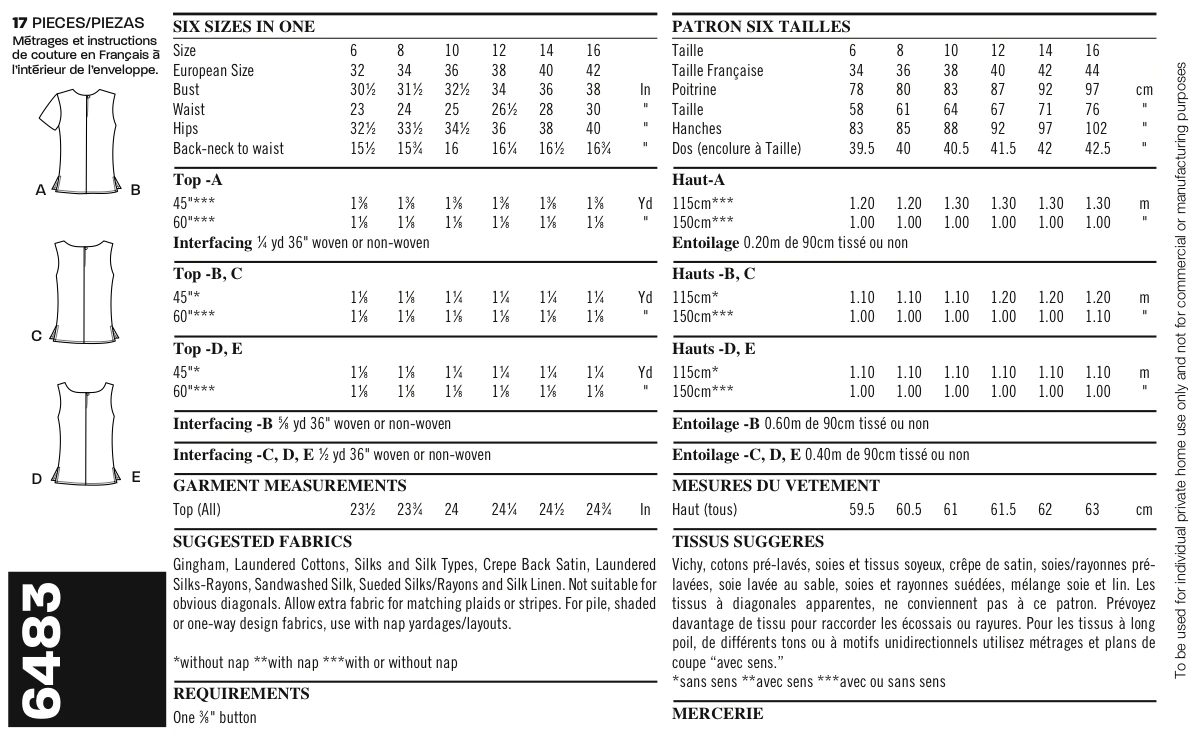 Quick and easy to sew misses top in five variations