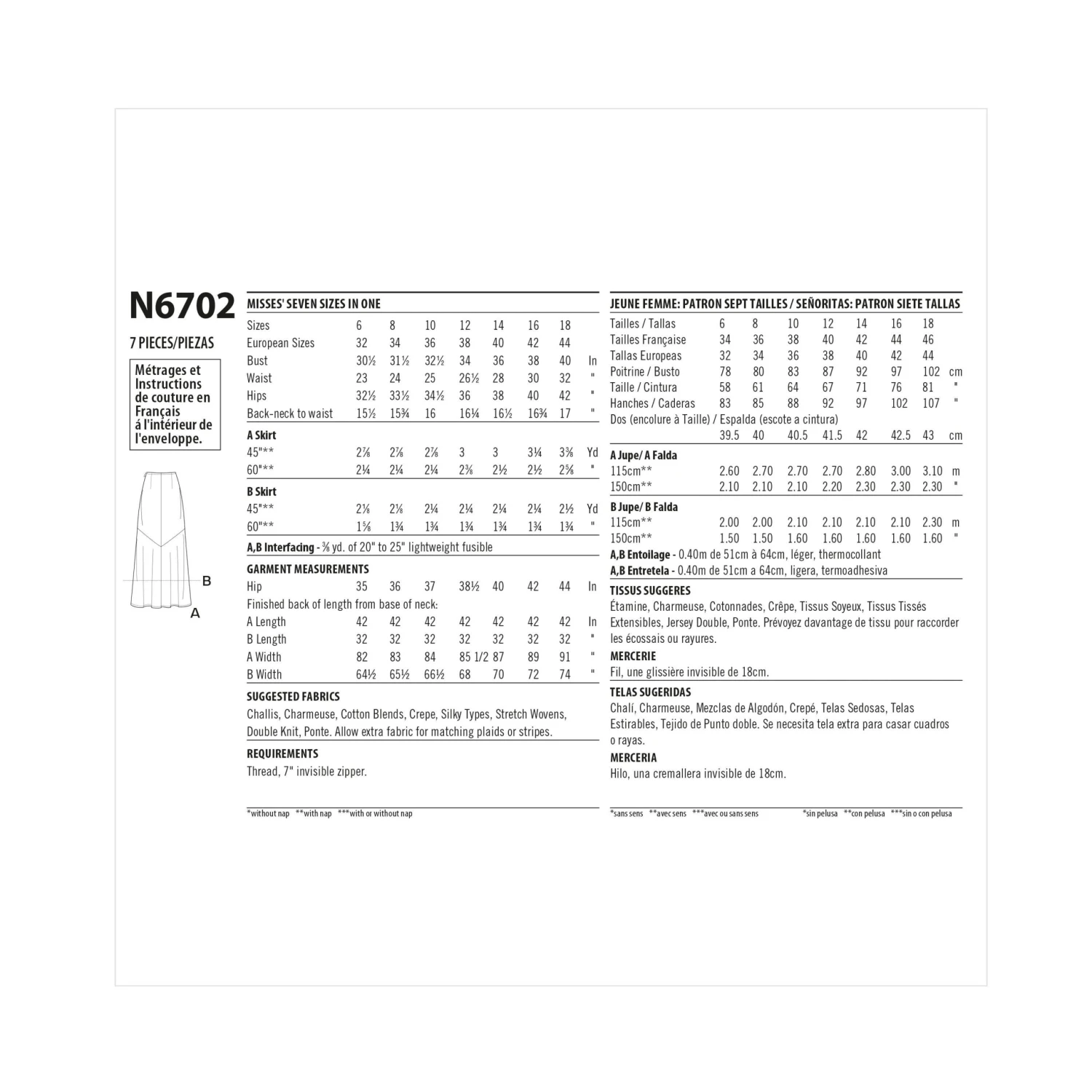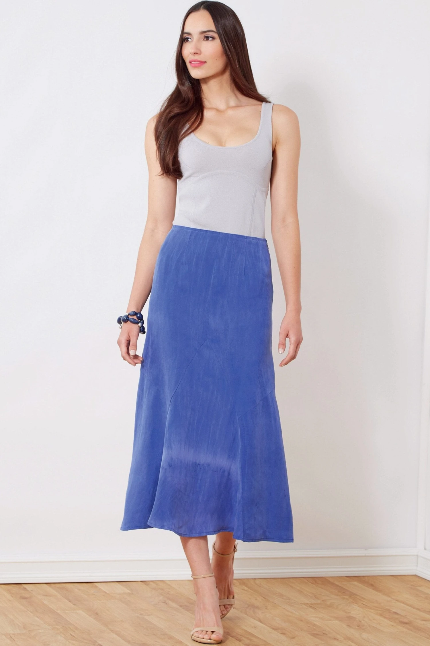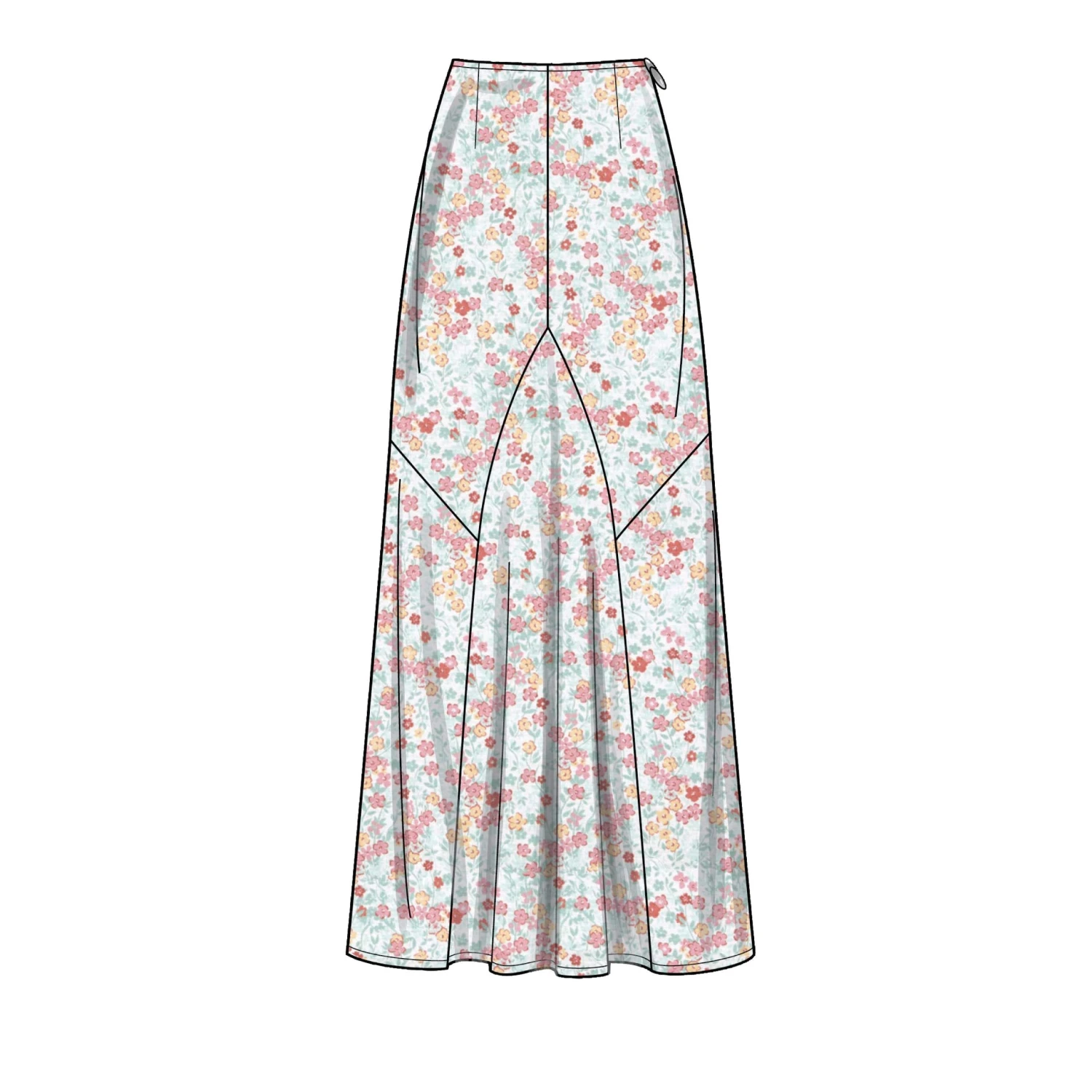 New Look sewing pattern for Misses’ skirts with seaming; slim fitting through hips with a slightly flared hem.