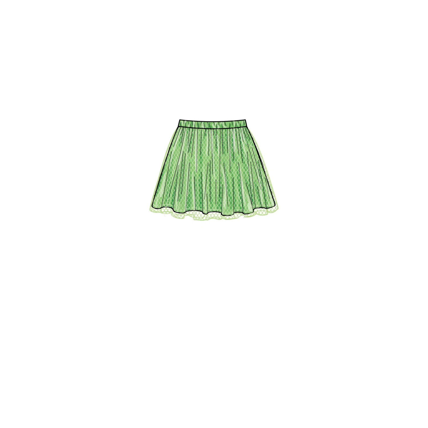 Create a casual children’s hoodie with drop shoulders and kangaroo pocket. Skirts have elastic waistbands; view C is an overlay mesh or tulle skirt.