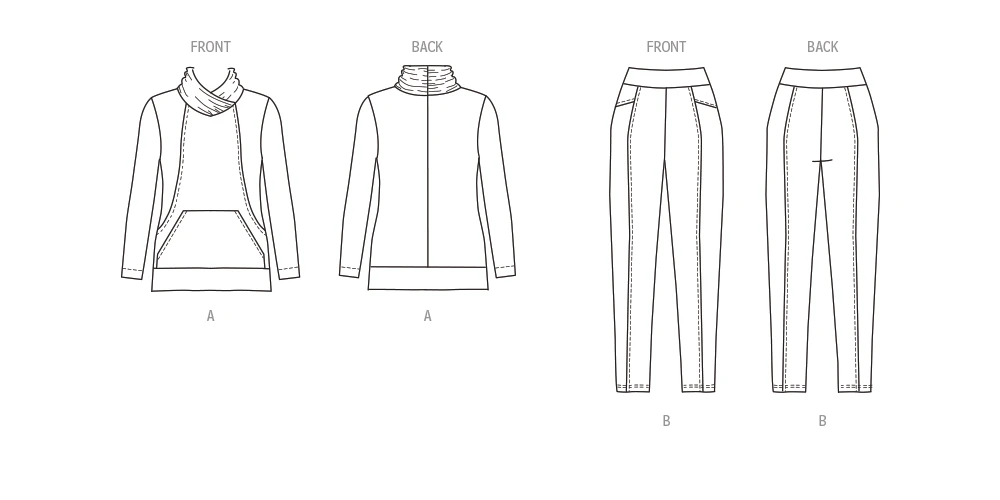 Fabric Suggestion : Moderate Stretch Knits (35% Cross Grain) such as Jersey, Interlock, Ponte, French Terry, Sweatshirt Fleece.