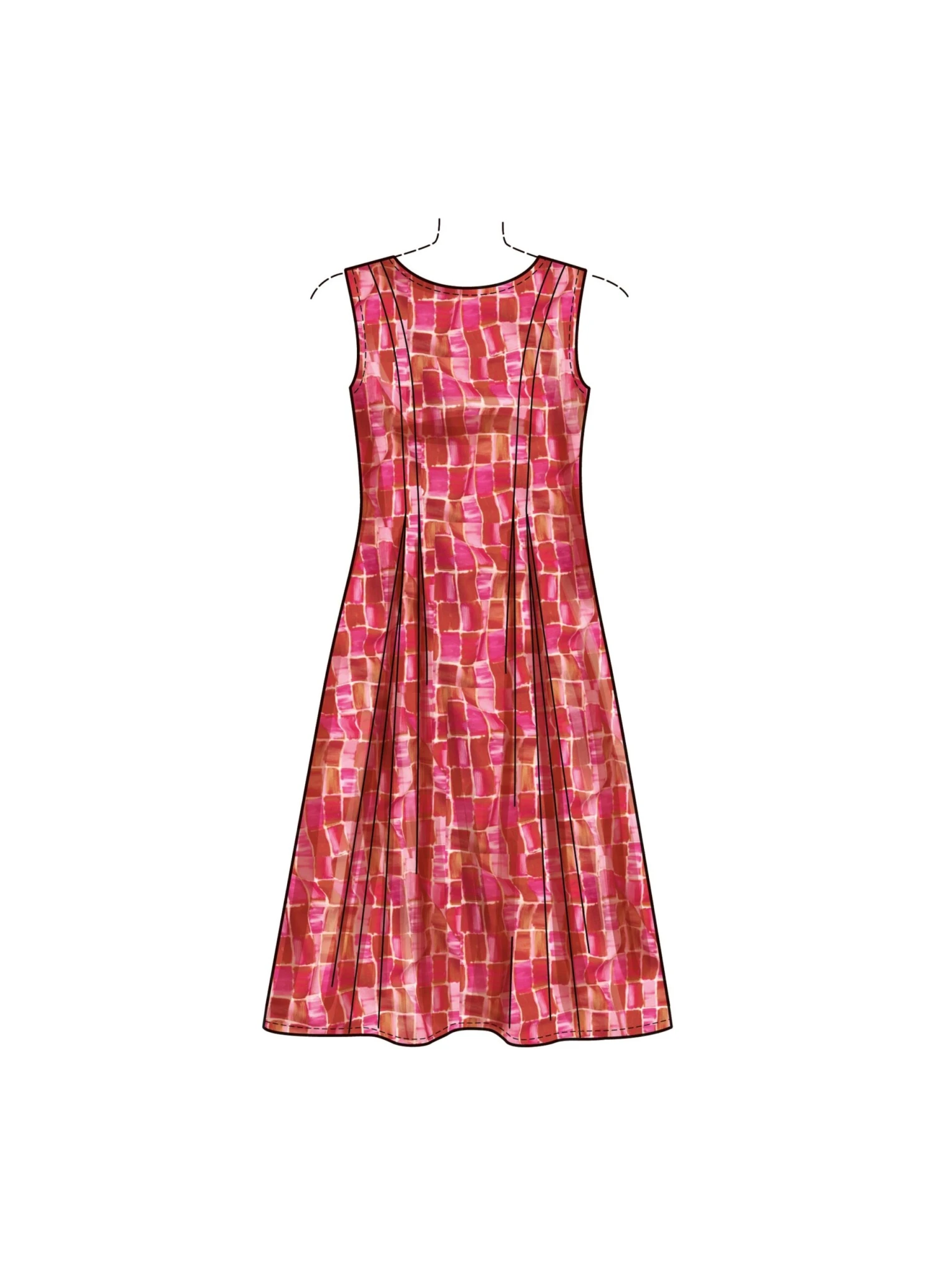 New Look sewing pattern for Easy to sew dress in two lengths has back zipper with front and back released pleats.
