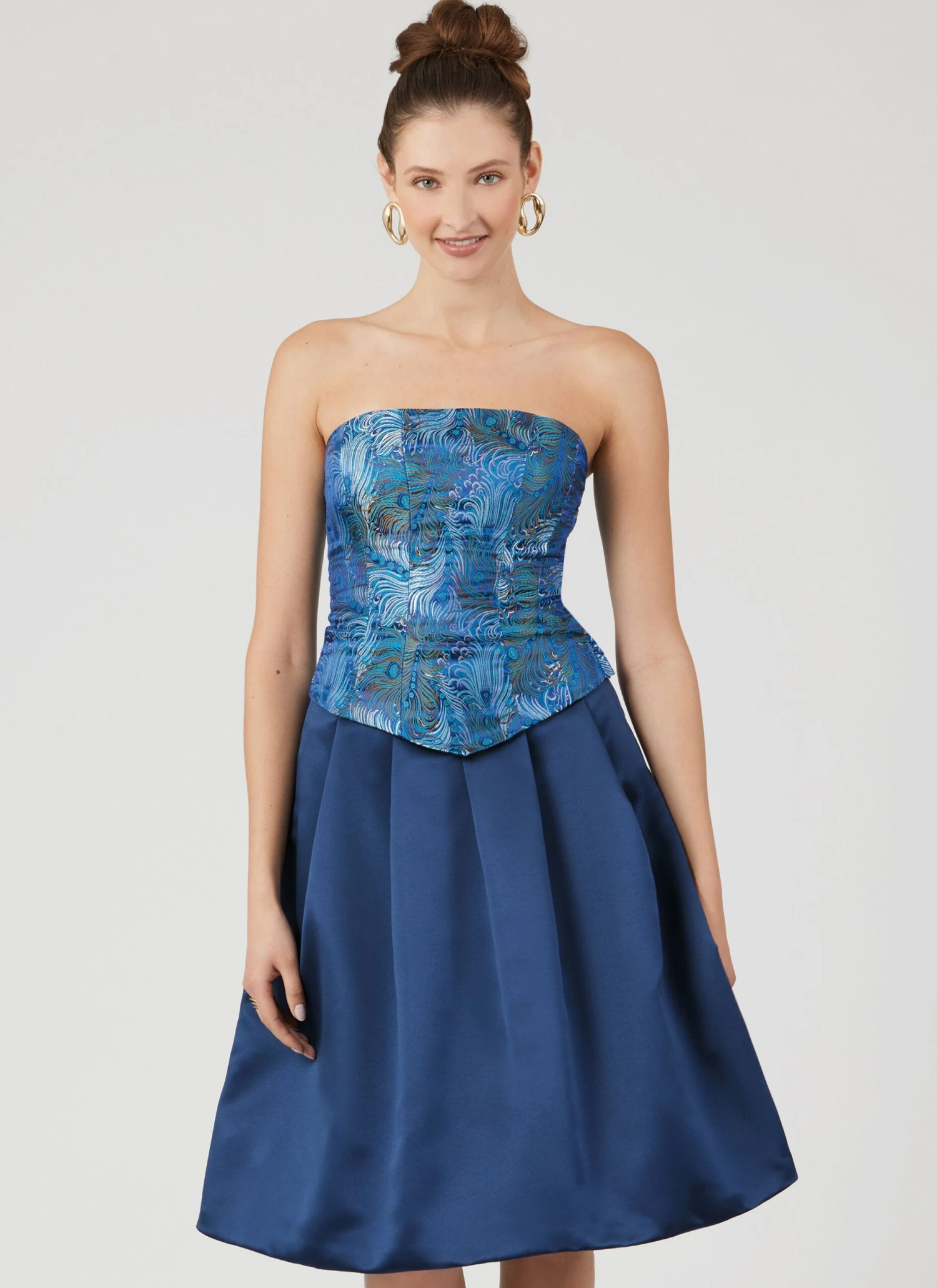 Fabric Suggestion : Brocade, Crepe, Crepe Back Satin, Crepe de Chine, Jacquards, Satin, Shantung, Taffeta, Tissue Lame, Velvet. Ruffle F in Net. A,B,C,D Interfacing: Lightweight Fusible.