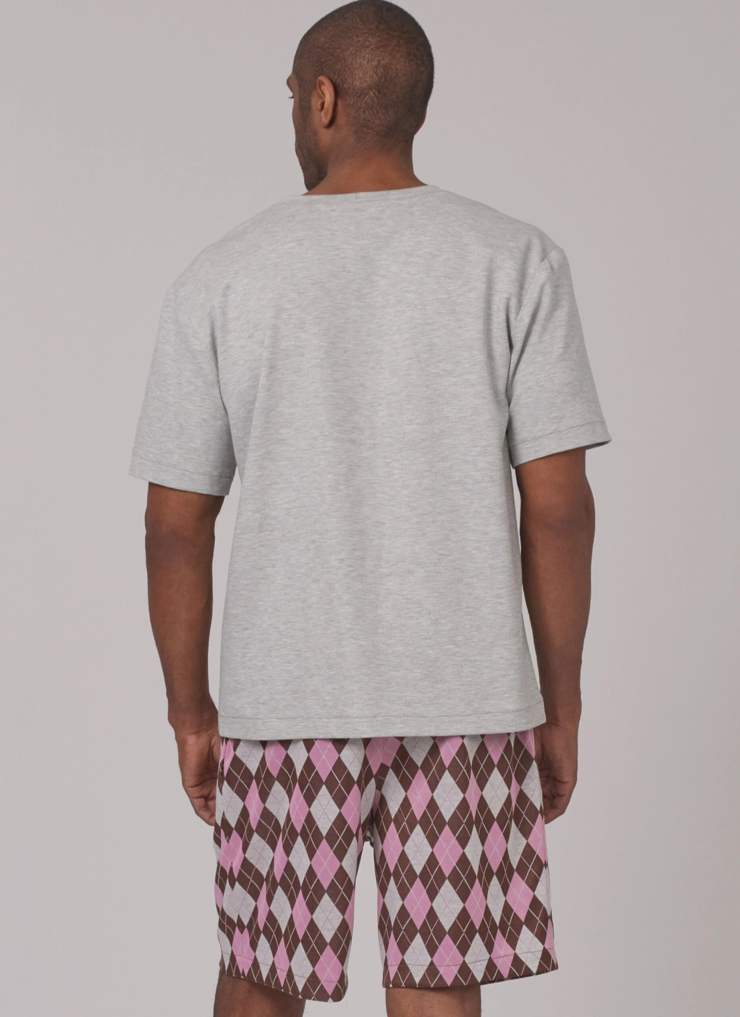 New Look sewing pattern for Comfy sleepwear pattern includes top, pants, shorts for Men and Misses and dress in Misses sizing. Top and dress with short sleeves have scoop neckline. Pull on shorts and pants have elastic waistband.