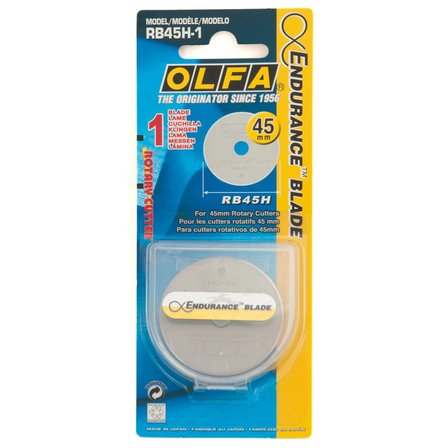 Save time with these Olfa rotary blades that can easily cut through six layers of fabric. The blade is made in Japan from tungsten tool steel, ensuring long-lasting sharpness and saving you money.