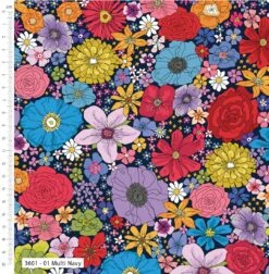 Elephant Festival Organic Cotton Fabric, Painted Flower Turq