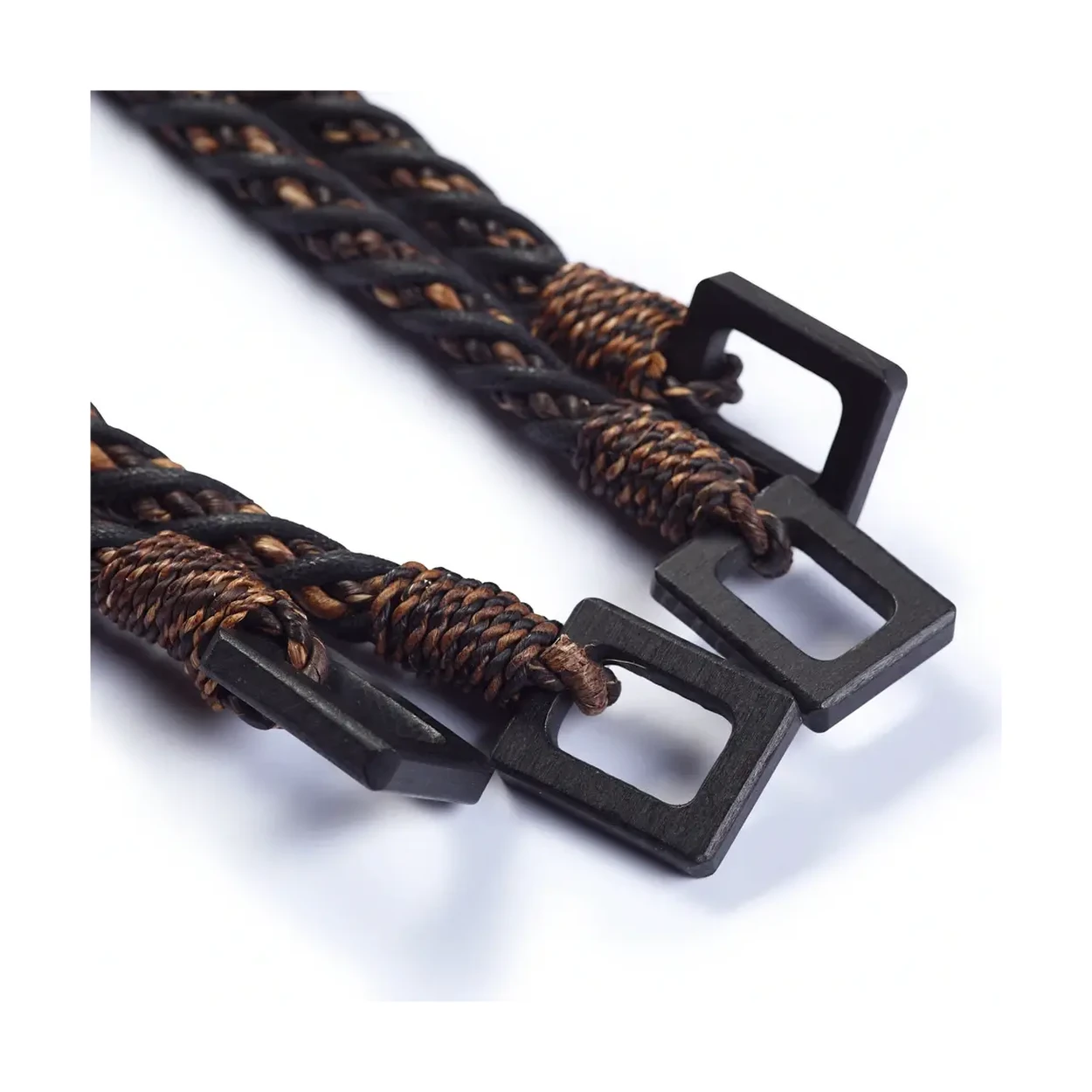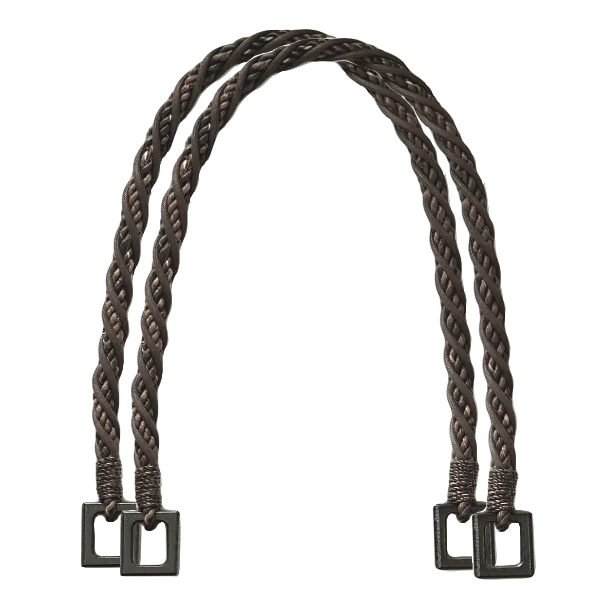 Stylish, natural-looking bag handles bring a delightful finish! The Isabella handles are full of character, created with woven, dark-brown mixed fabric fibres. A black cotton cord reinforces the bag handle, doubling as a pretty design element. 62 cm in length, these handles are perfect for various-sized bags due to their adjustable reach. To complete the handmade bag look, the bag handle are fixed using rectangular dark-brown wooden hangers. Each pack contains two handles.