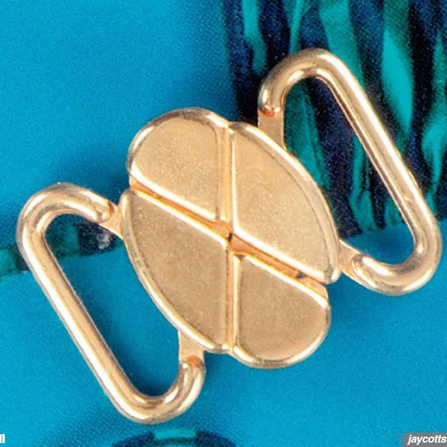 Bikini Replacement Clasps. 12mm. Clover Leaf Design. Metal gold colour. 1 per pack.