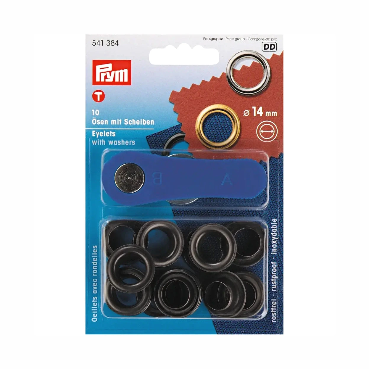 These 14mm Prym Black metal eyelets are perfect for adding decorative touches to your projects without the need for sewing. Use them for lace-up closures, accessories, and other embellishments. Made from high-quality and rust-resistant brass for long-lasting durability.