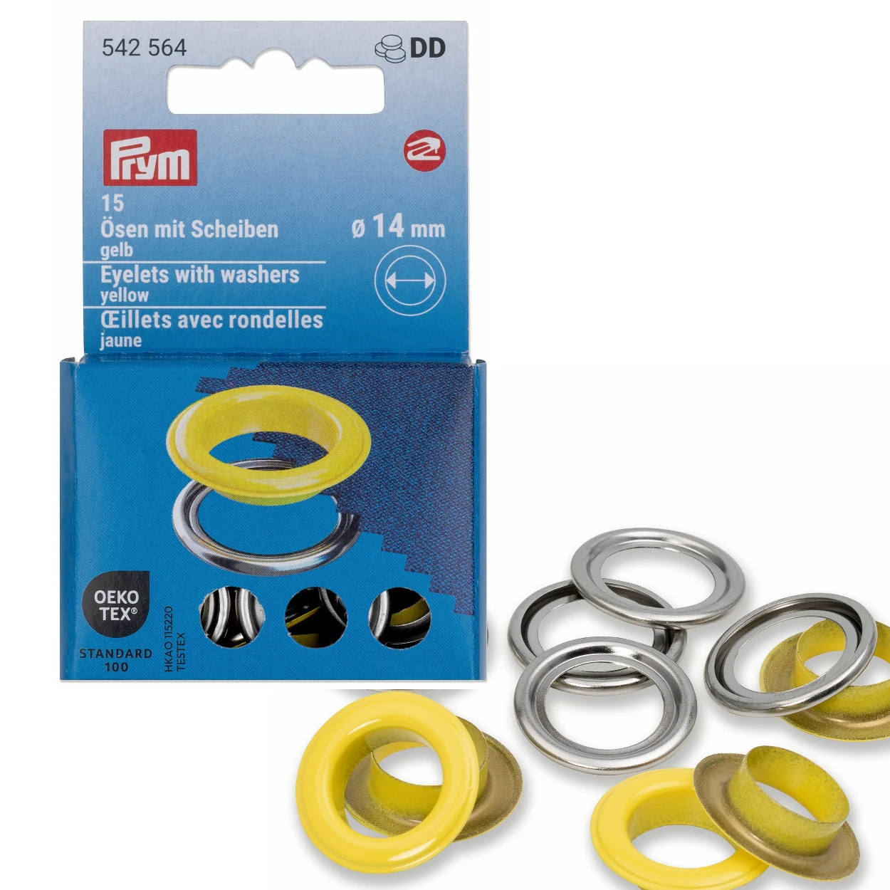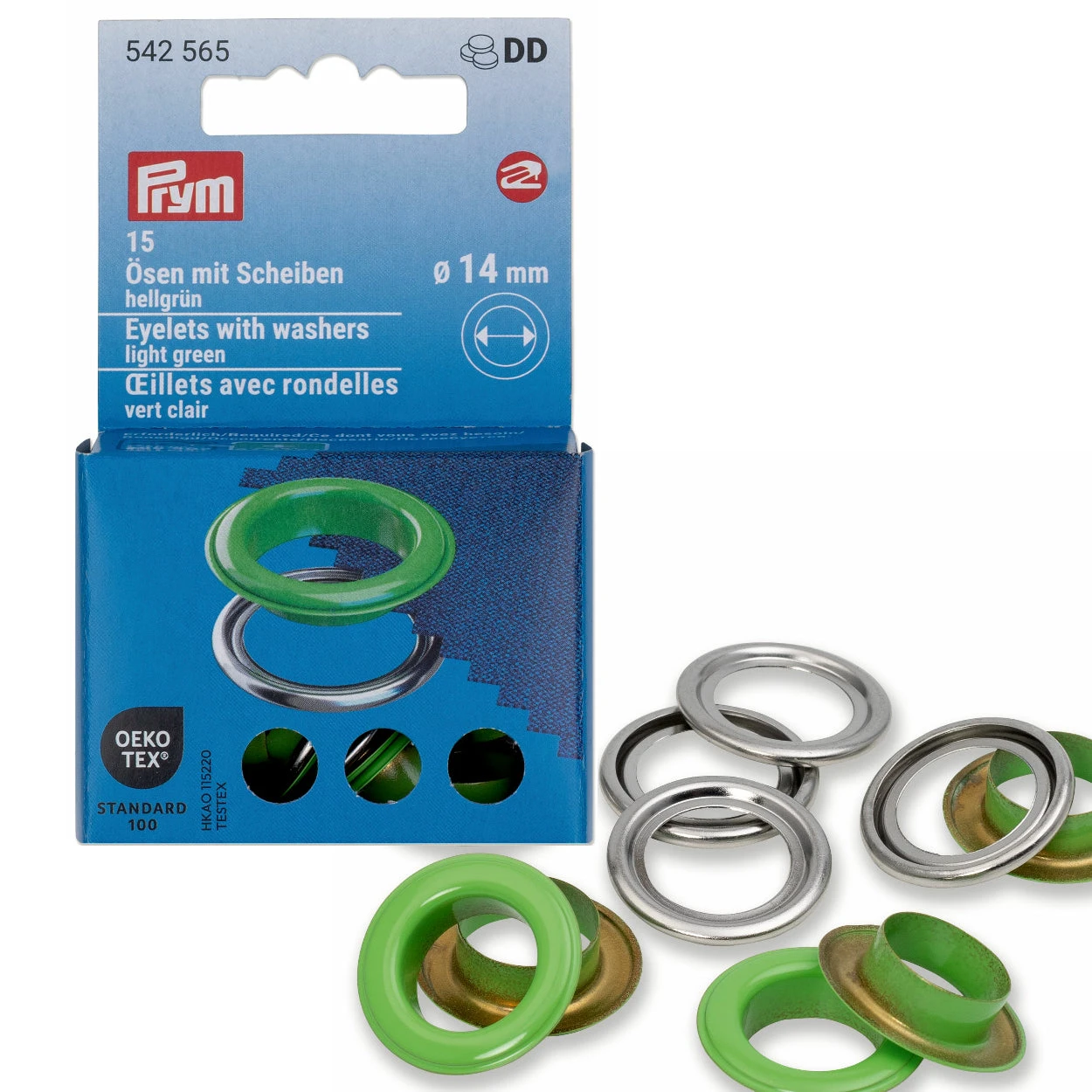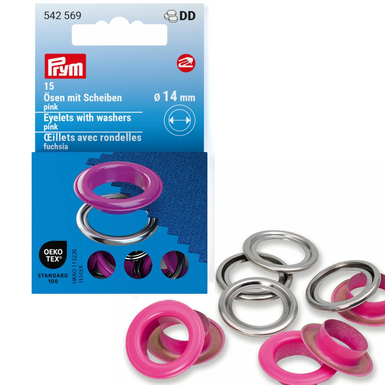 Supplied in packs of 20, the colourful non-sew eyelets with washers from Prym add a splash of colour to your next sewing project. Ideal for embellishing bags, home accessories and more. Choice of 11 colours.