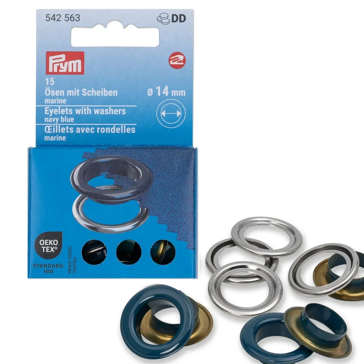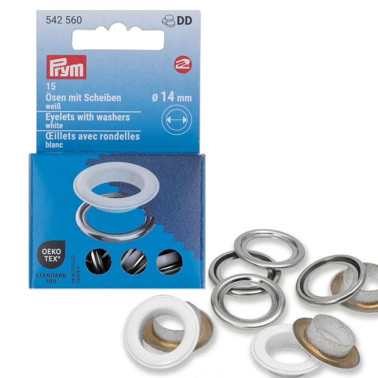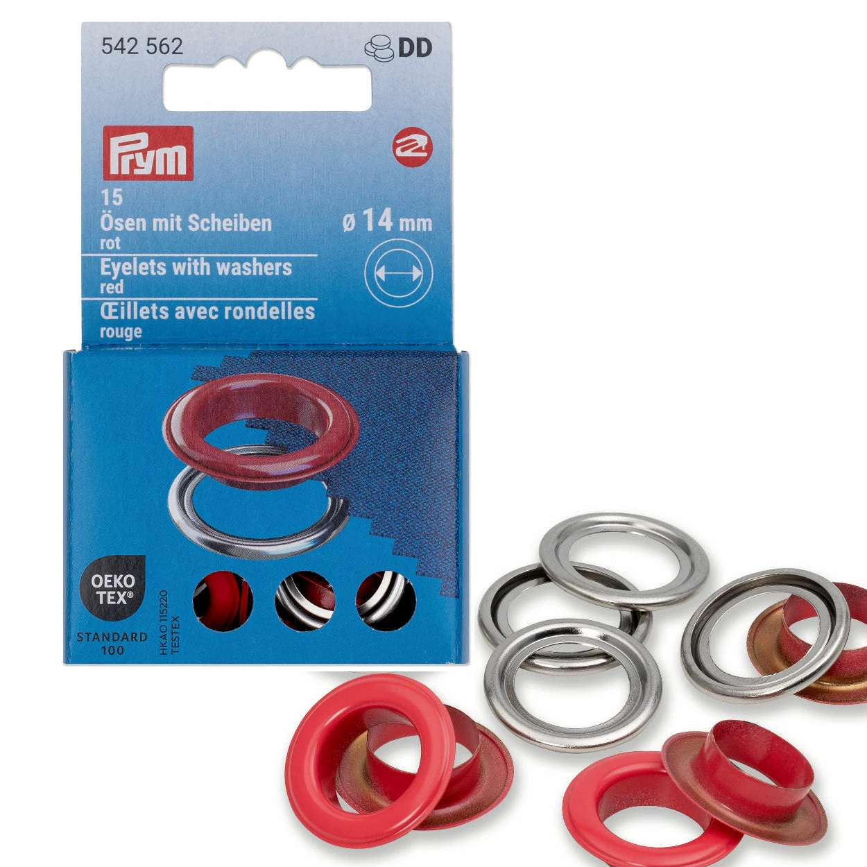 Supplied in packs of 20, the colourful non-sew eyelets with washers from Prym add a splash of colour to your next sewing project. Ideal for embellishing bags, home accessories and more. Choice of 11 colours.