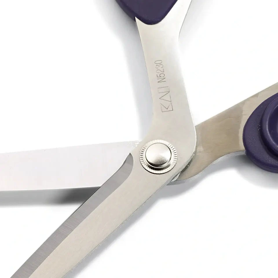 These KAI Sidebent dressmaker’s shears provide precise, straight cuts on a wide range of materials. Made from extremely hard stainless steel, they maintain consistent cutting performance. The carefully mounted and polished blades prevent fabric crushing, while the screw connection reduces wear and the ergonomic soft grip handle aids comfortable, pressure-free cutting.