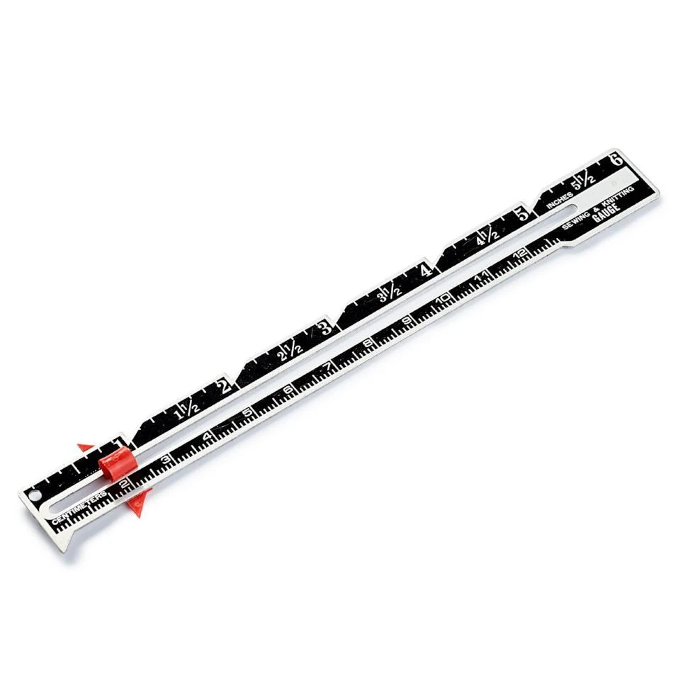 Prym’s metal sewing gauge is so handy for setting, measuring and marking any measurement. Its so neat you can use on work directly on the sewing machine or on knitting or crochet