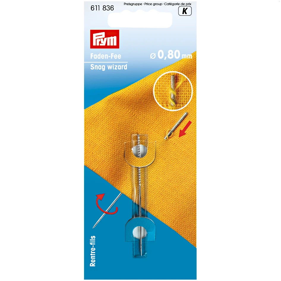 Use to quickly repair snags and pulls in jumpers and other knitted fabric.