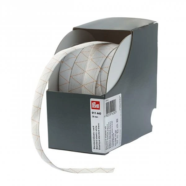 Supple, strong elastic for dressmaking, craft and general sewing use. Choose from a variety of widths. Available in standard packs or larger ‘value size’ 25m rolls