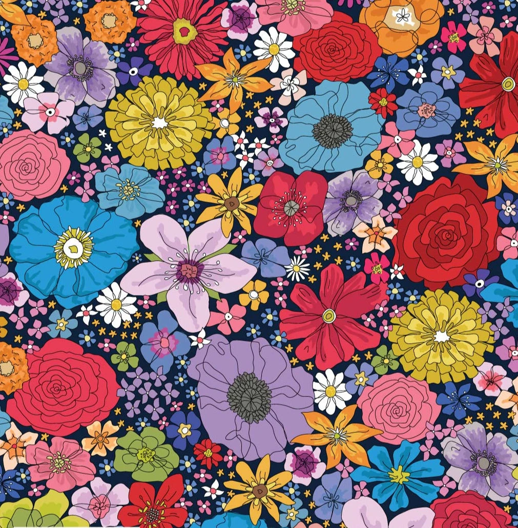 ‘The Rainbow Garden’ is a vivid spectrum of designs by Paula Milner, The Crafty Lass. Inspired by the myriad of wild flowers across the British countryside and the flowers in her own garden, these hand drawn florals include vibrant combinations of busy ditsies amongst larger scale blooms. Forming a ten piece collection, Paula hopes it inspires you to get colourfully creating!