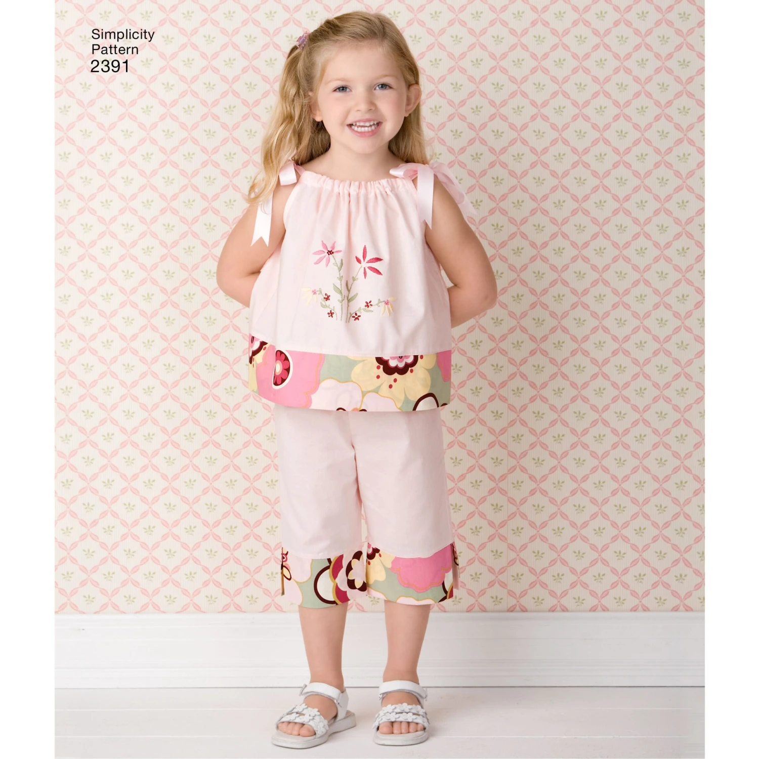 Child’s dress, tops, pants, and bag made from vintage pillow cases or suitable fabrics. See back of envelope for details.