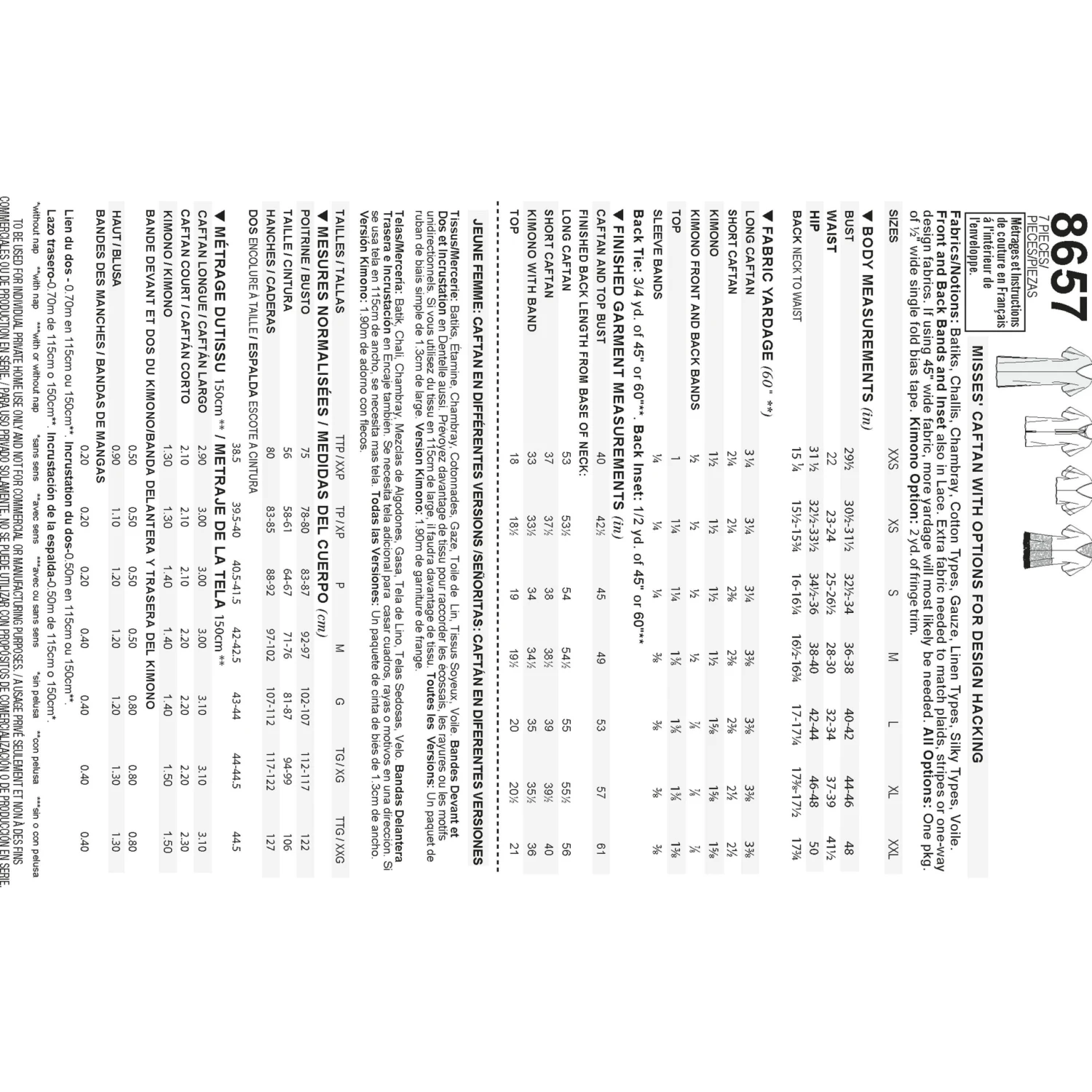This caftan includes options to create a kimono, top and dress that is uniquely you. Click “Envelope Back” directly above for more information. Also see other patterns in our Pattern Hack collection: 8375 knit dress/top, 8376 knit top, 8377 knit cardigan, 8378 knit Trousers, 8473 cape and 8658 woven top.