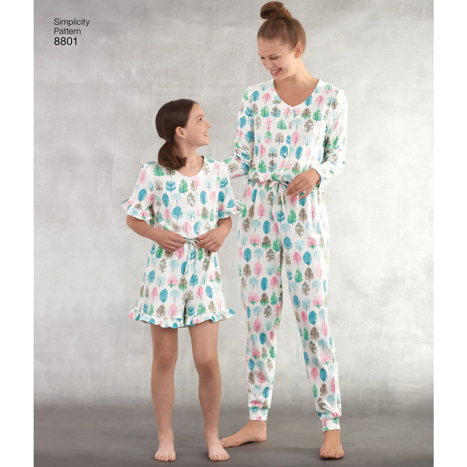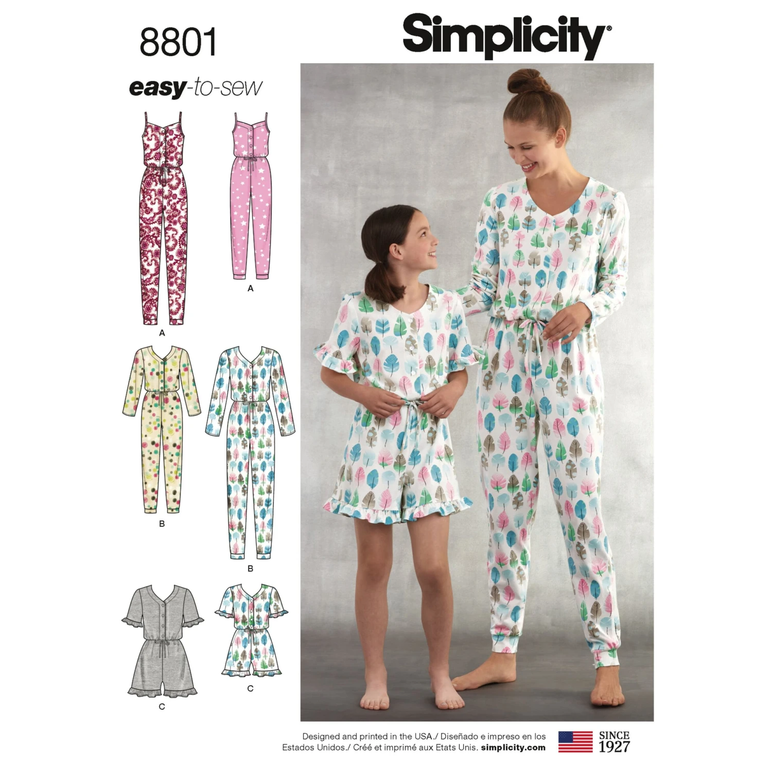 Nothing like having mother daughter time while in comfy cozy onesies. Features sleeveless, short or long sleeve options and includes jumpsuit or romper lengths. Simplicity sewing pattern.