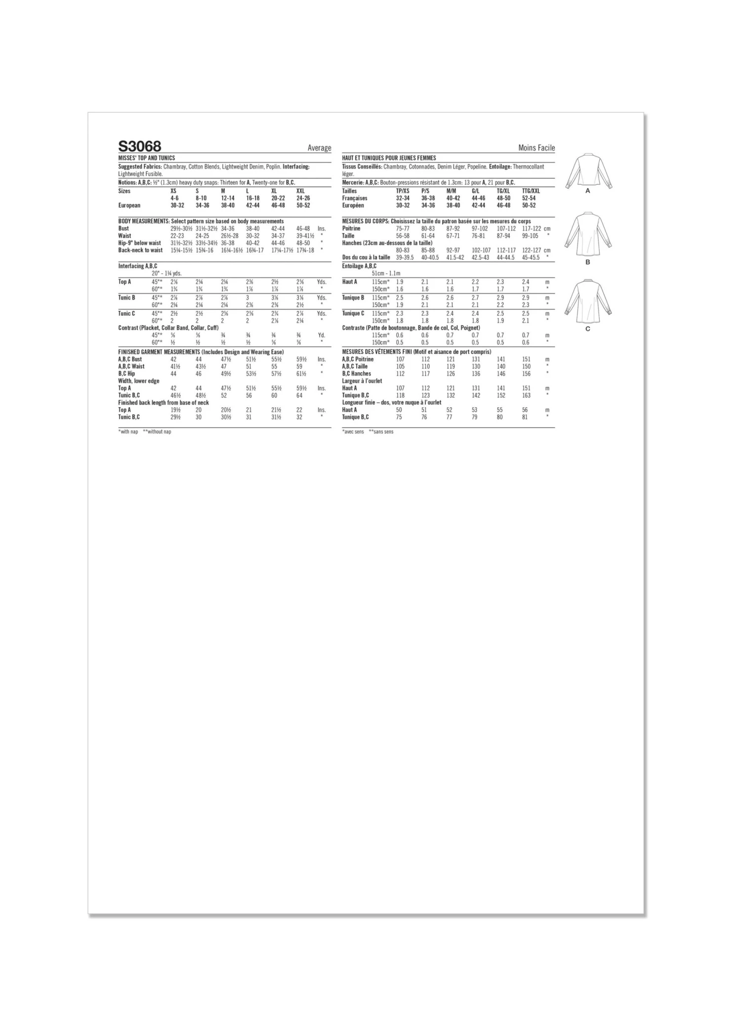 Fabric Suggestion : Chambray, Cotton Blends, Lightweight Denim, Poplin. Interfacing: Lightweight Fusible.