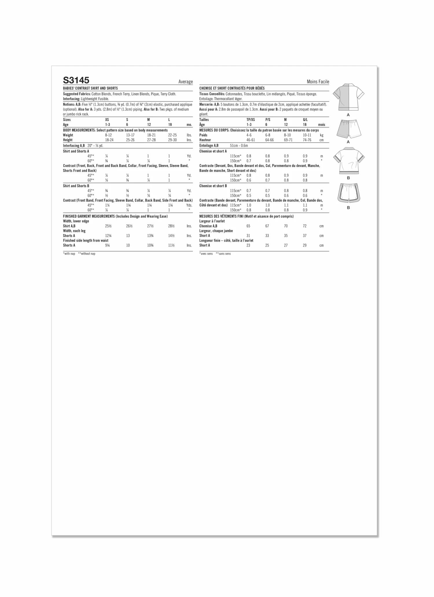 Be the first to review “Simplicity Sewing Pattern 3145 Babies’ Contrast Shirt And Shorts” Cancel reply