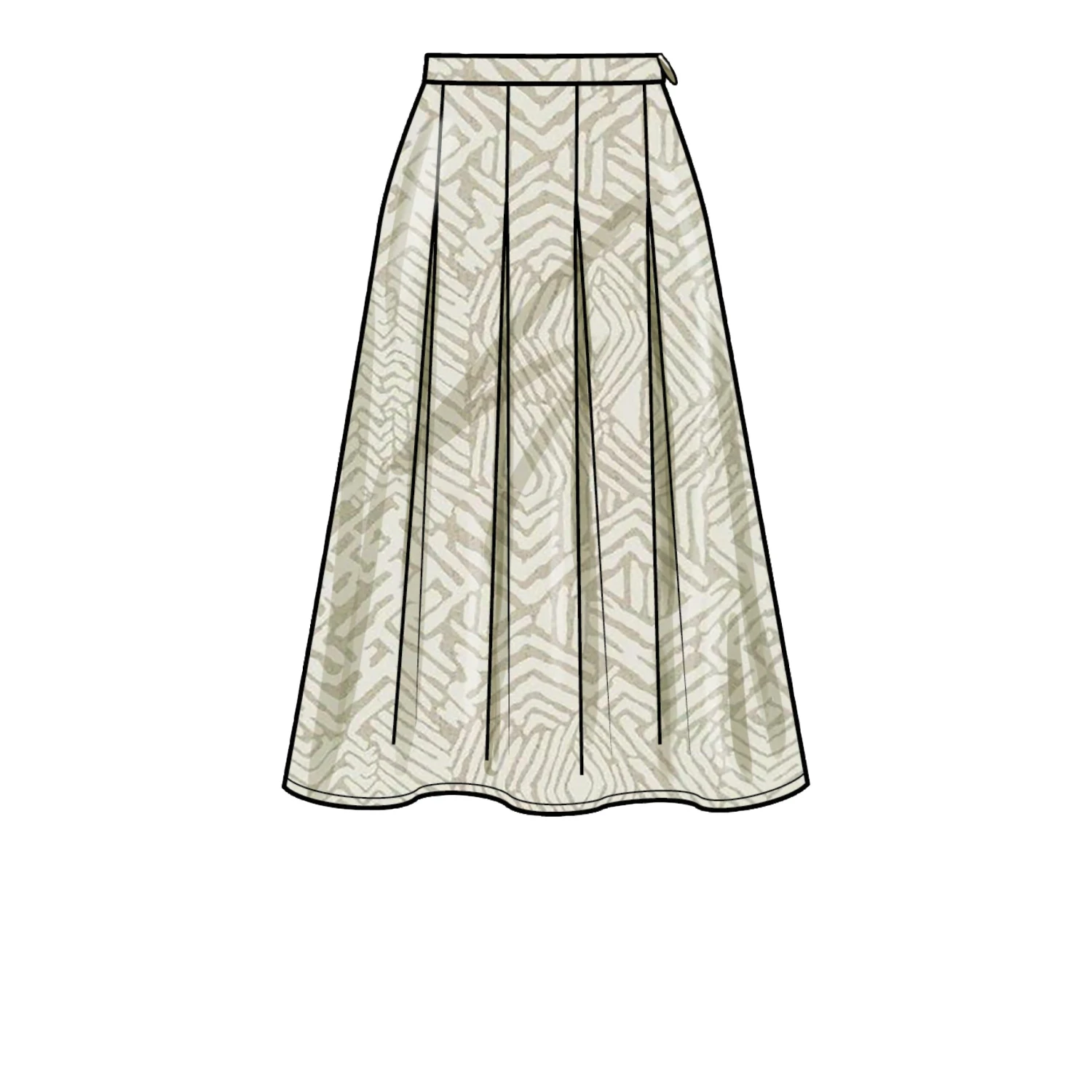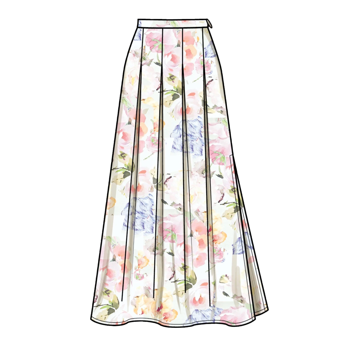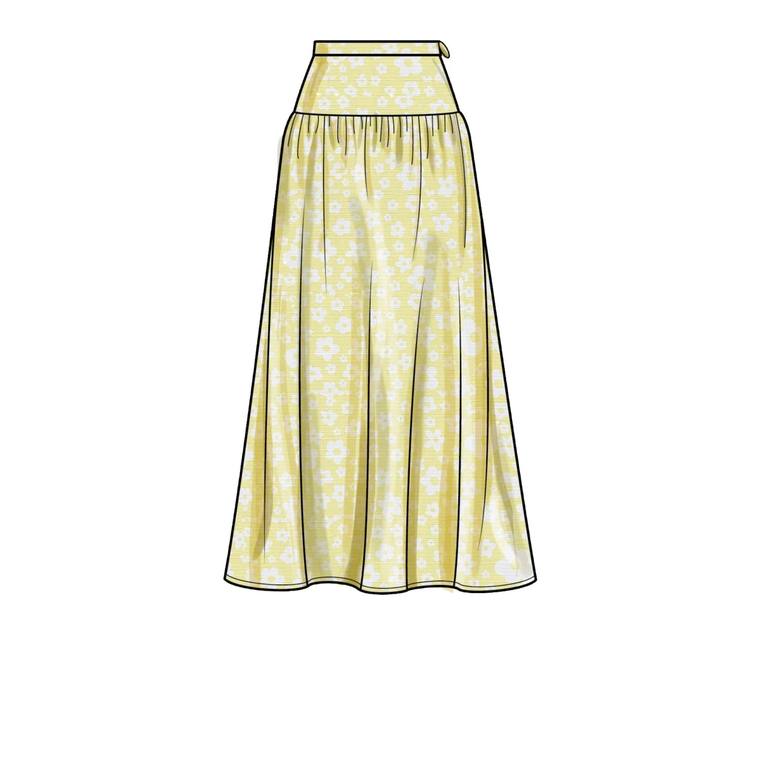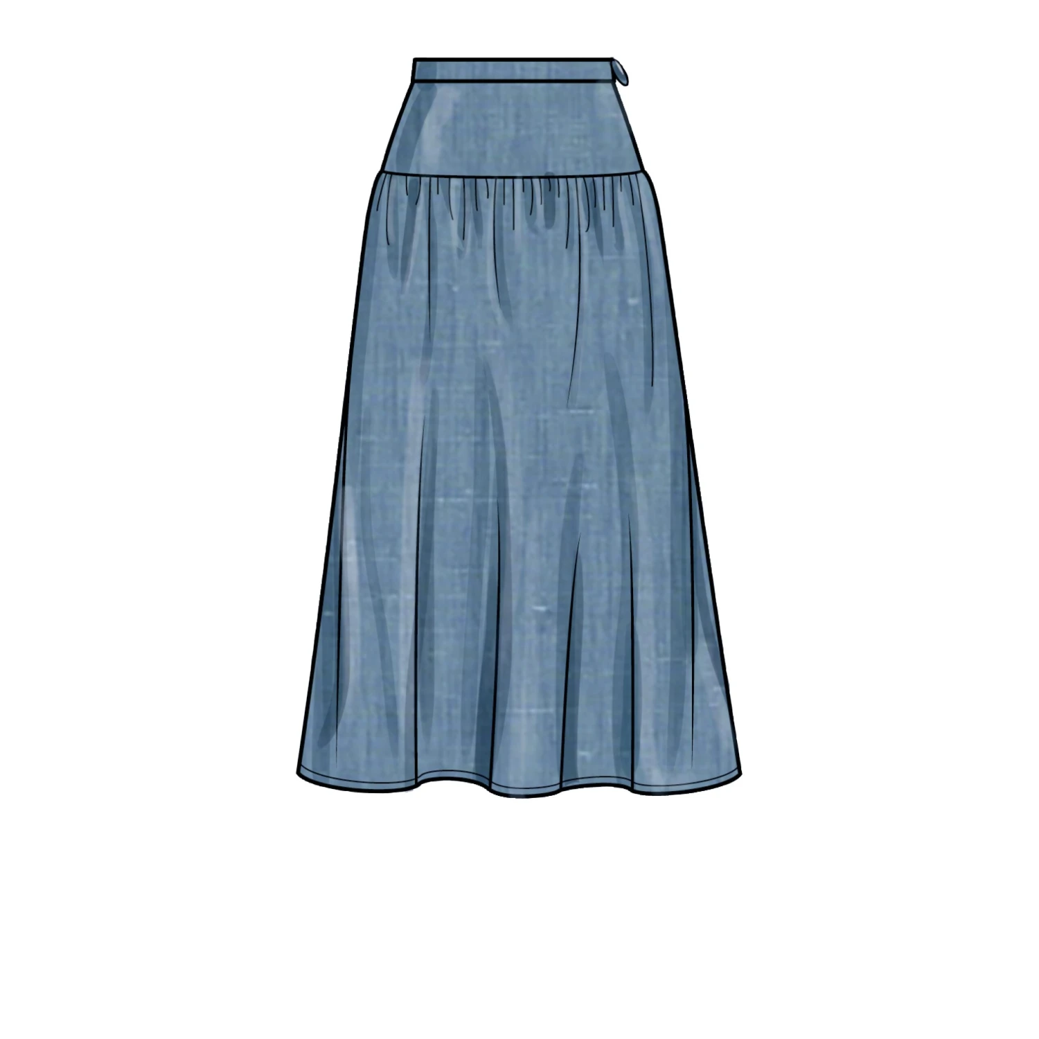 Easy to sew pattern for Pleated or gathered skirts have waistband, side seam pockets and side zipper, length variations and optional side seam slit.