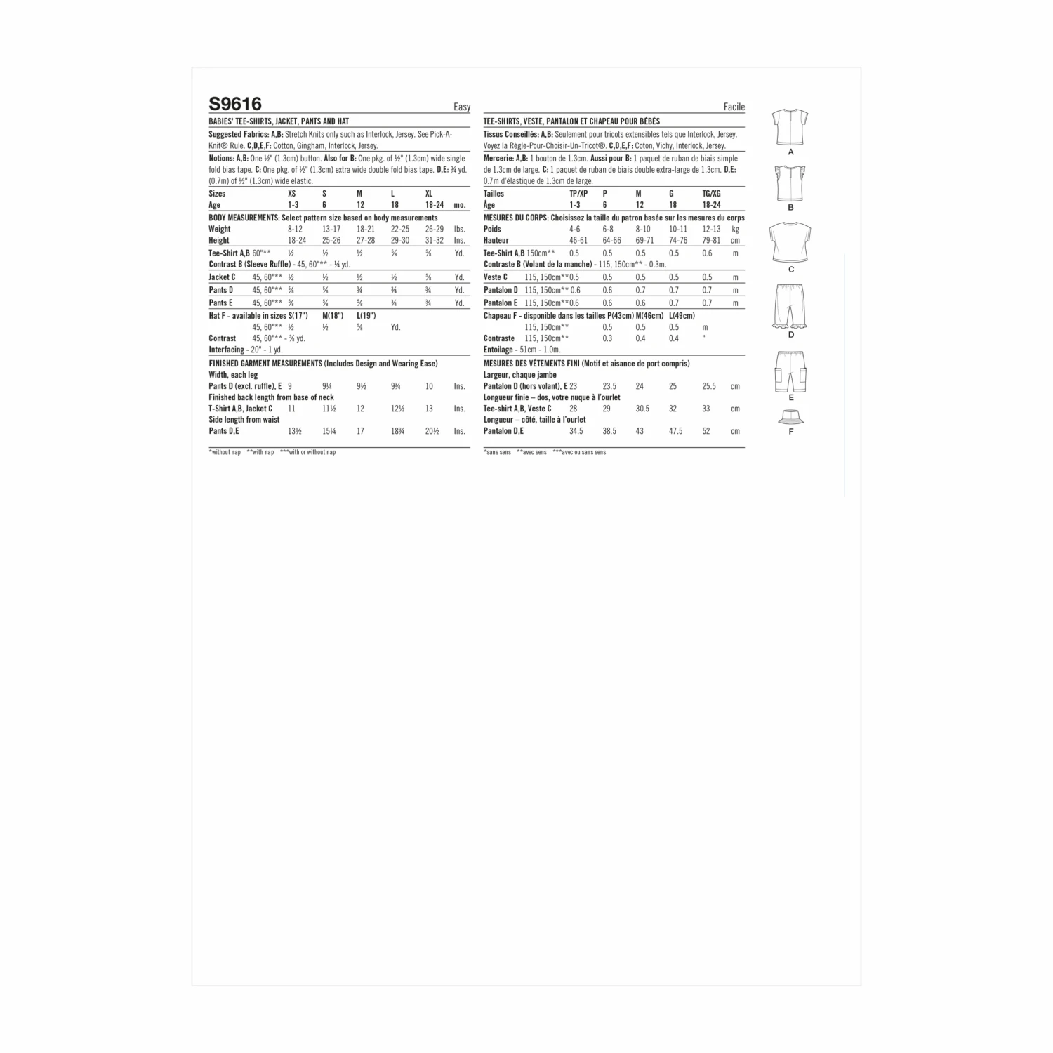 Be the first to review “Simplicity Sewing Pattern 9616 Babies’ T-Shirts, Jacket, Pants And Hat” Cancel reply