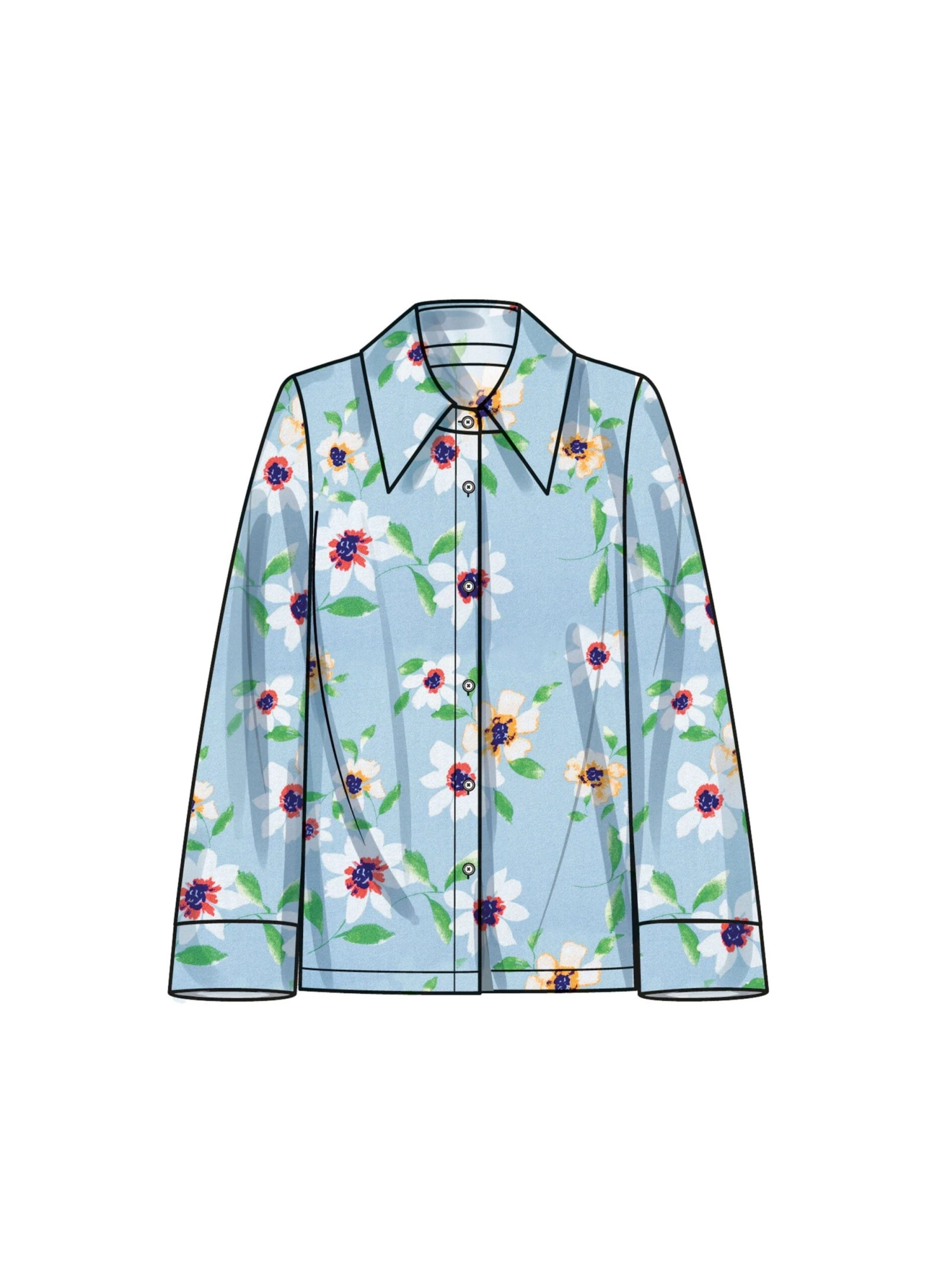 Fabric Suggestion : Cotton Blends, Cotton Lawns, Crepe de Chine, Poplin, Silky Types. Interfacing: Lightweight Fusible.