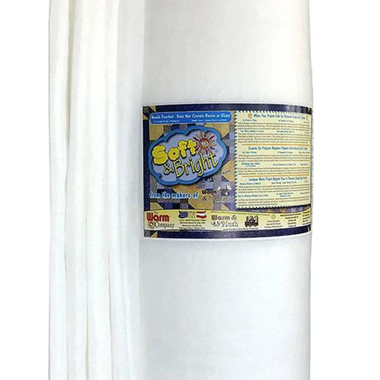 Soft and Bright consists of premium grade polyester fibres, needle-punched into a strong thin base material that holds the fibres in place, keeping the wadding even and consistent. The high quality polyester fibre is soft and fluffy to the touch.