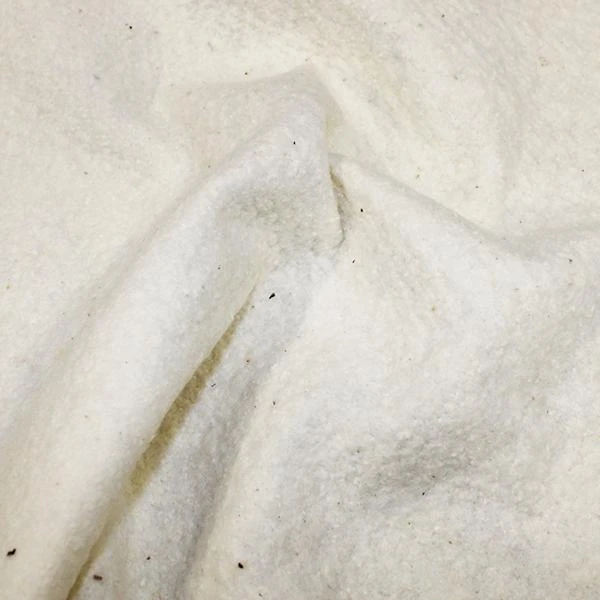 Cotton fibres punched with hundreds of needles through a base material holding all fibres together.